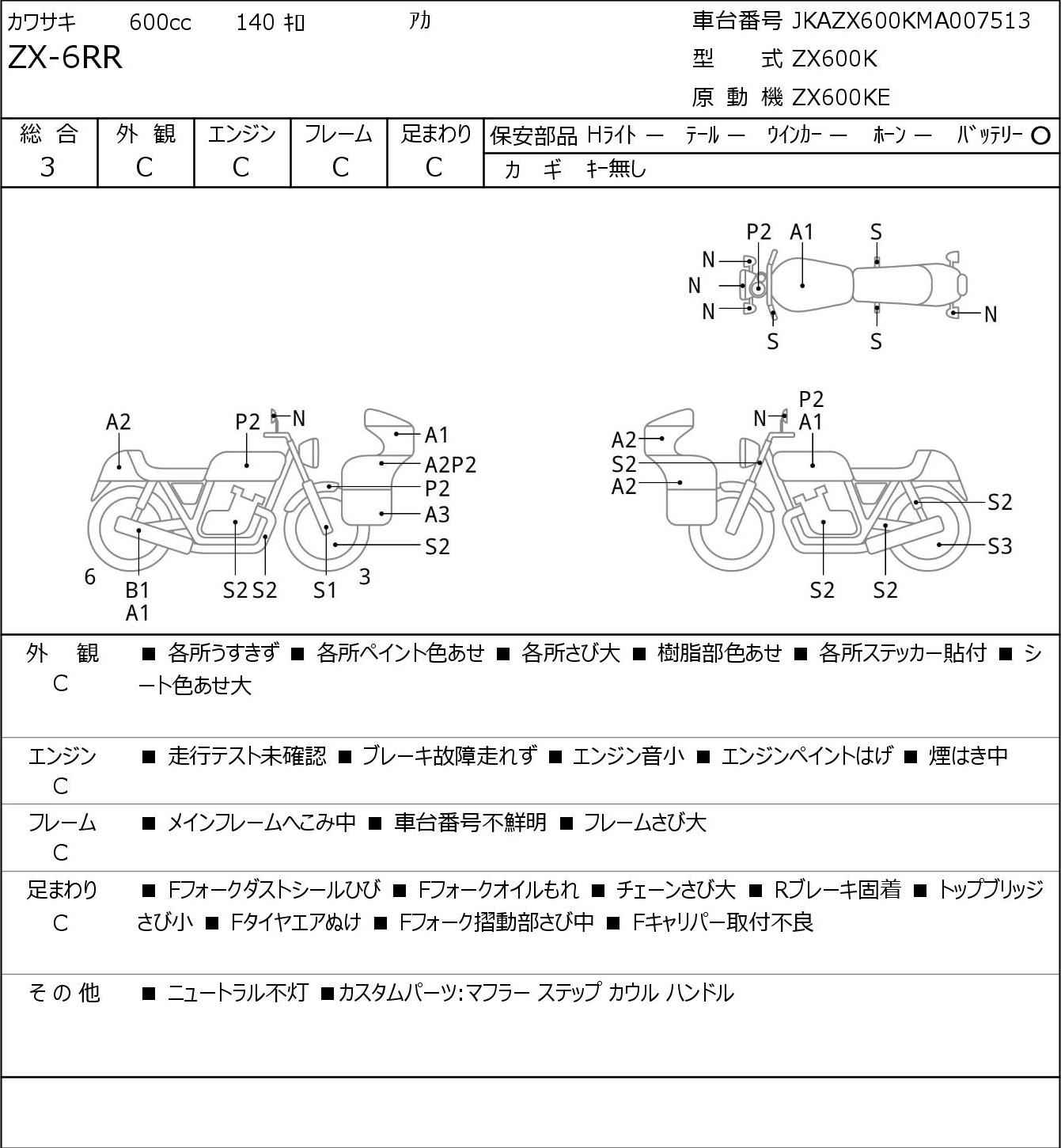Номер рамы: JKAZX600KMA007513