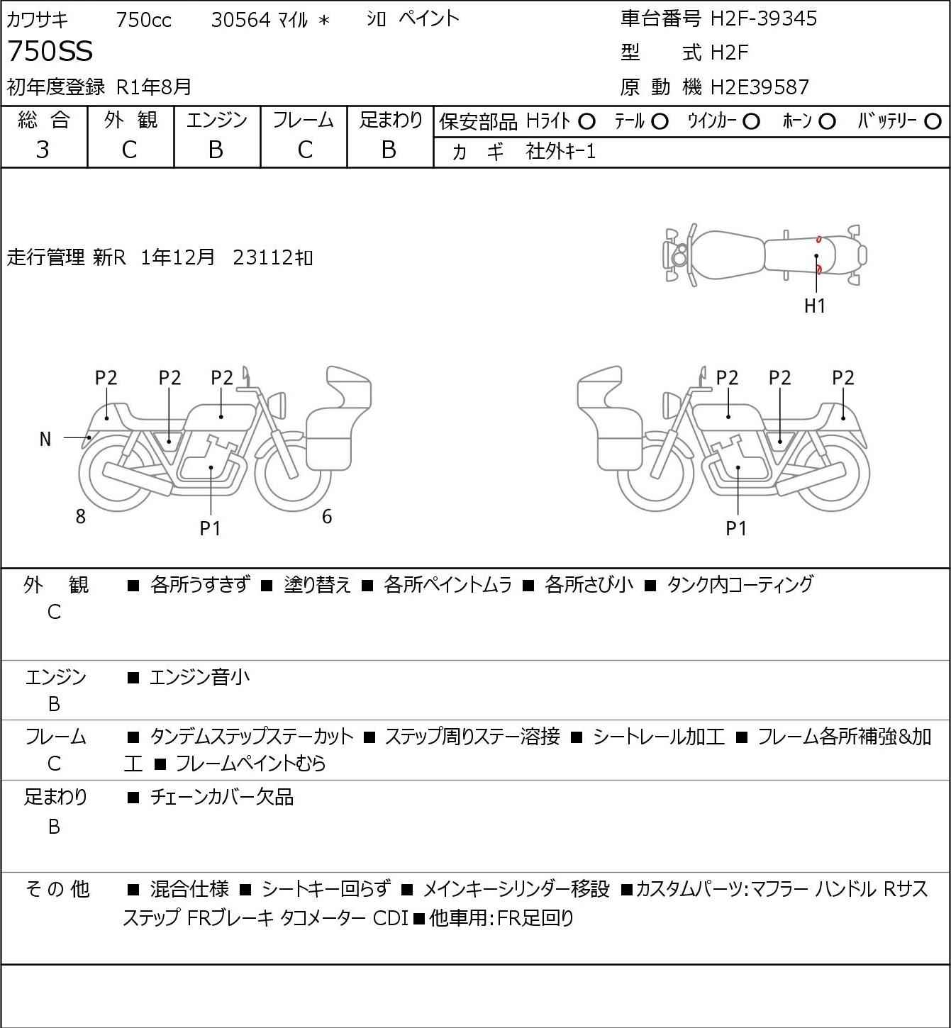 Номер рамы: H2F-39345