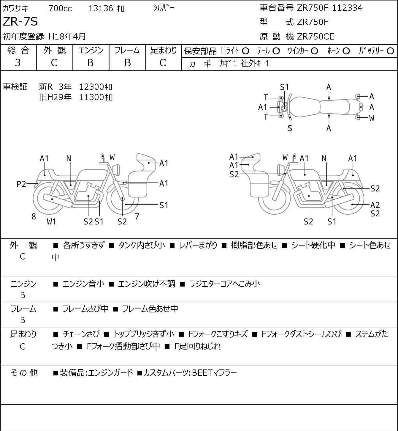 Номер рамы: ZR750F-112334