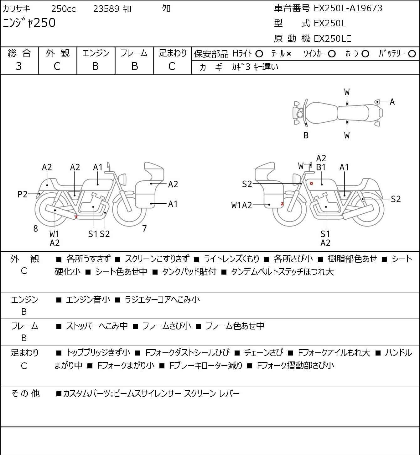 Номер рамы: EX250L-A19673