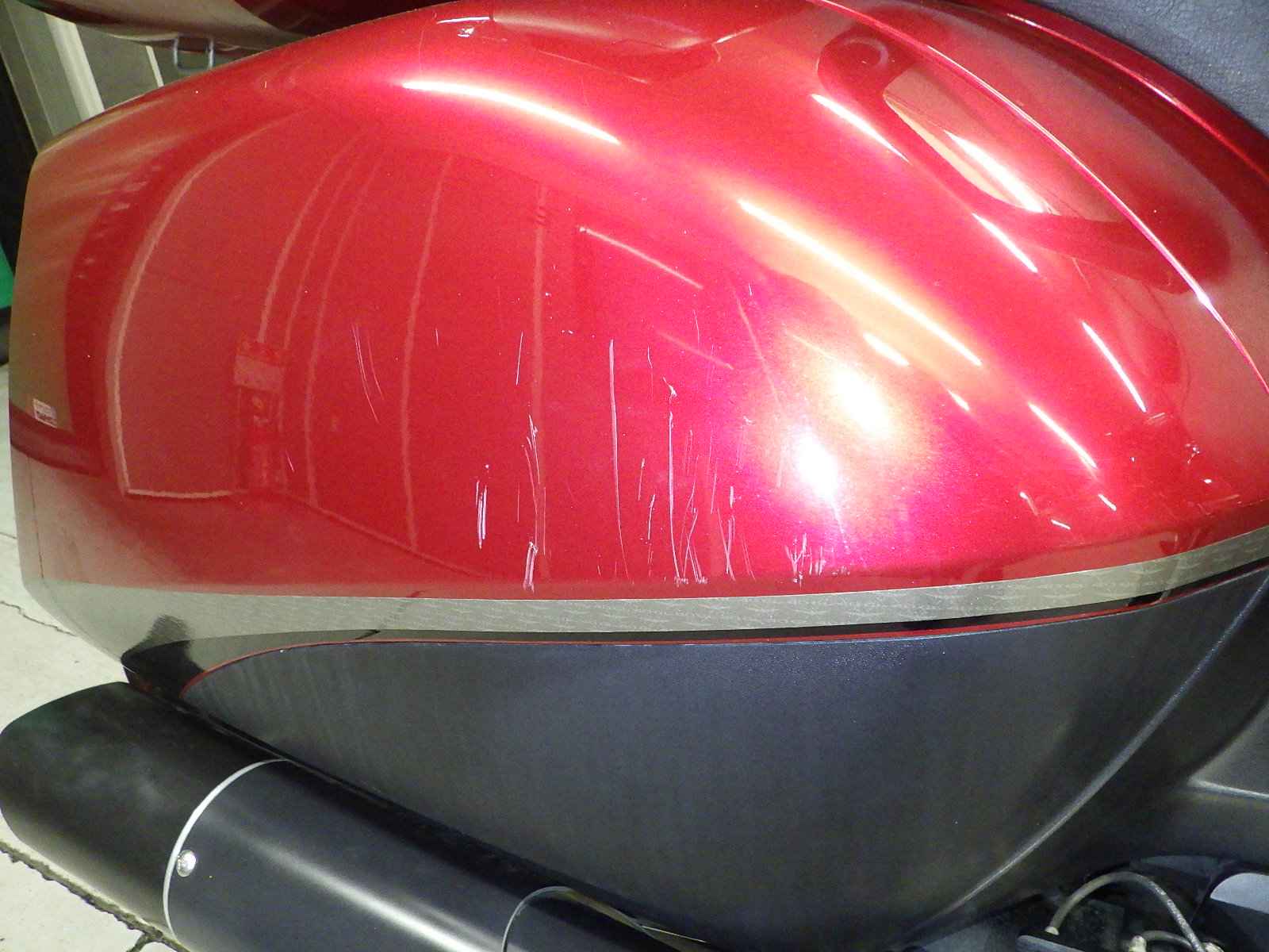 Выхлопная труба: Окисление на выхлопной трубе Уровень 3, Вмятина на крышке Уровень 3, Недостаток Уровень 3, Частичная покраска