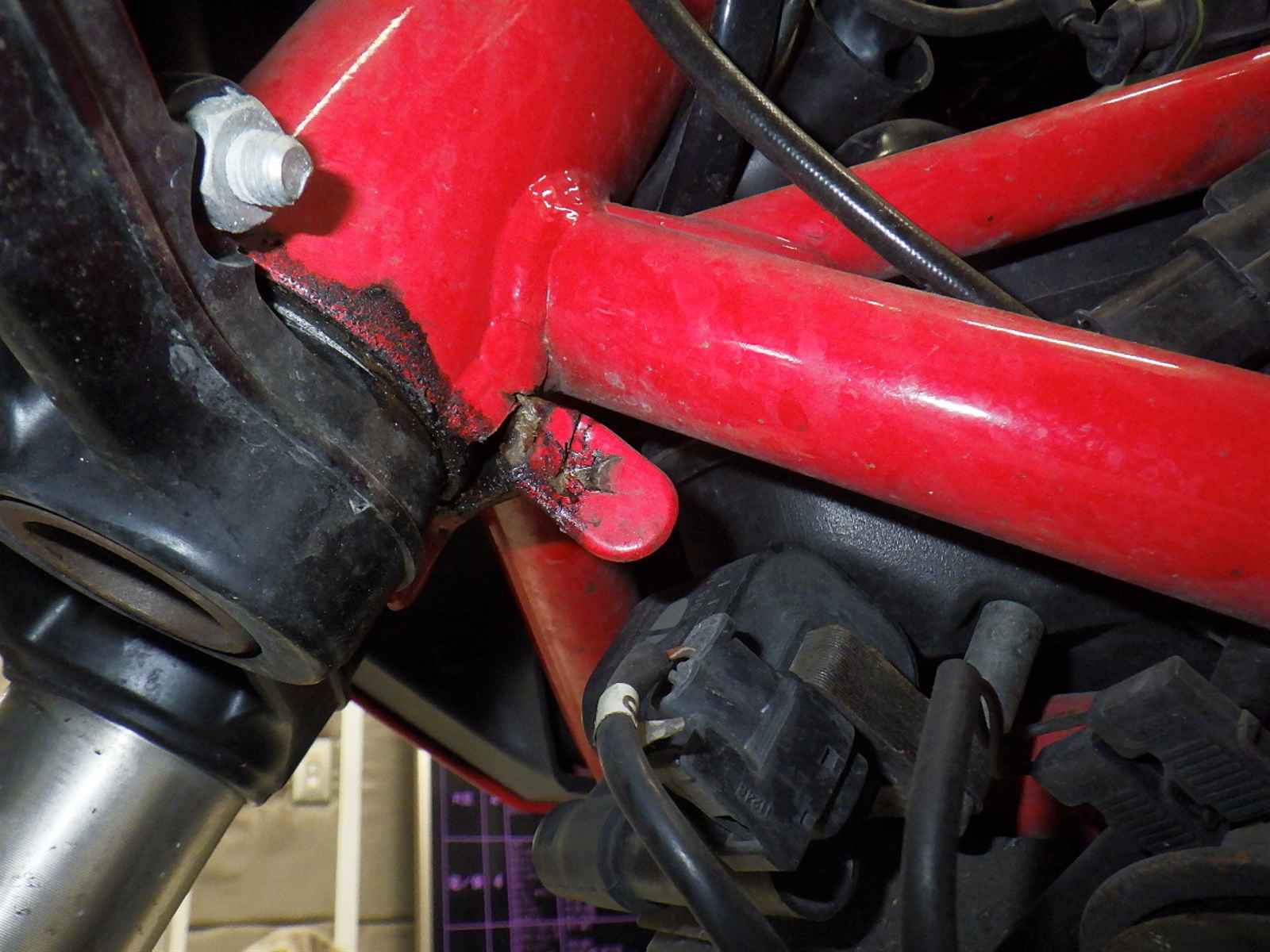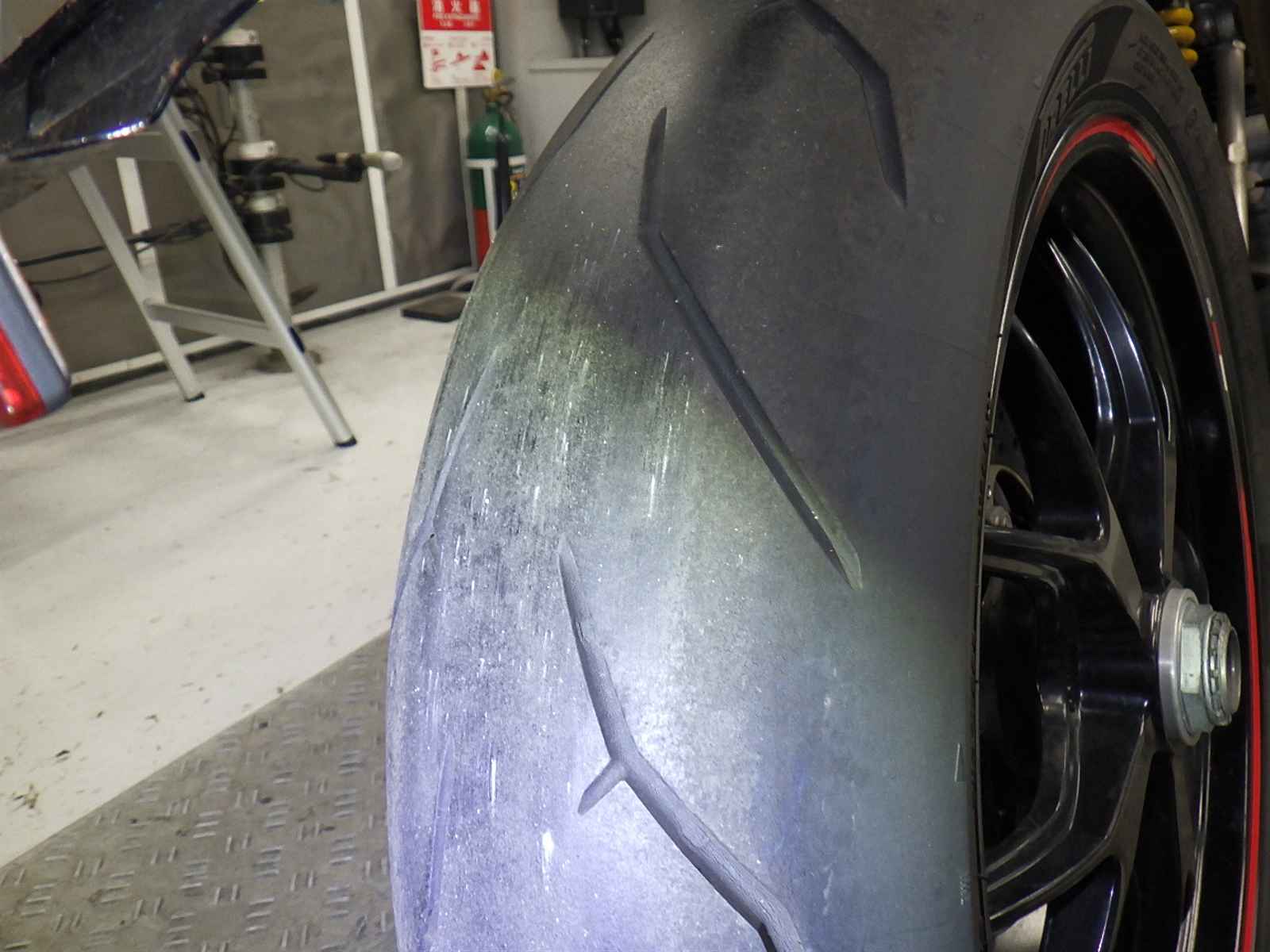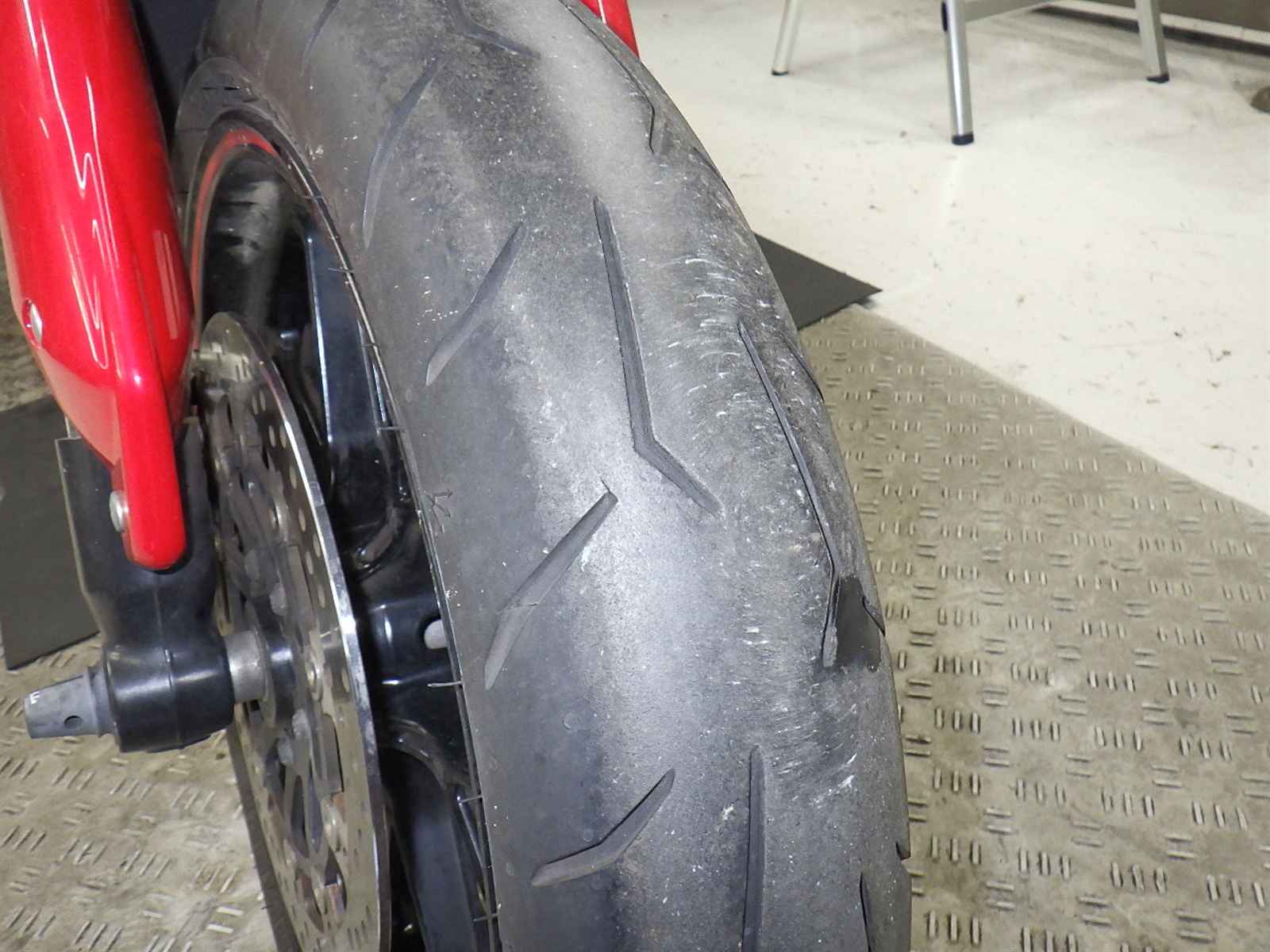 Передняя покрышка: Снижение давления в шине, Трещина