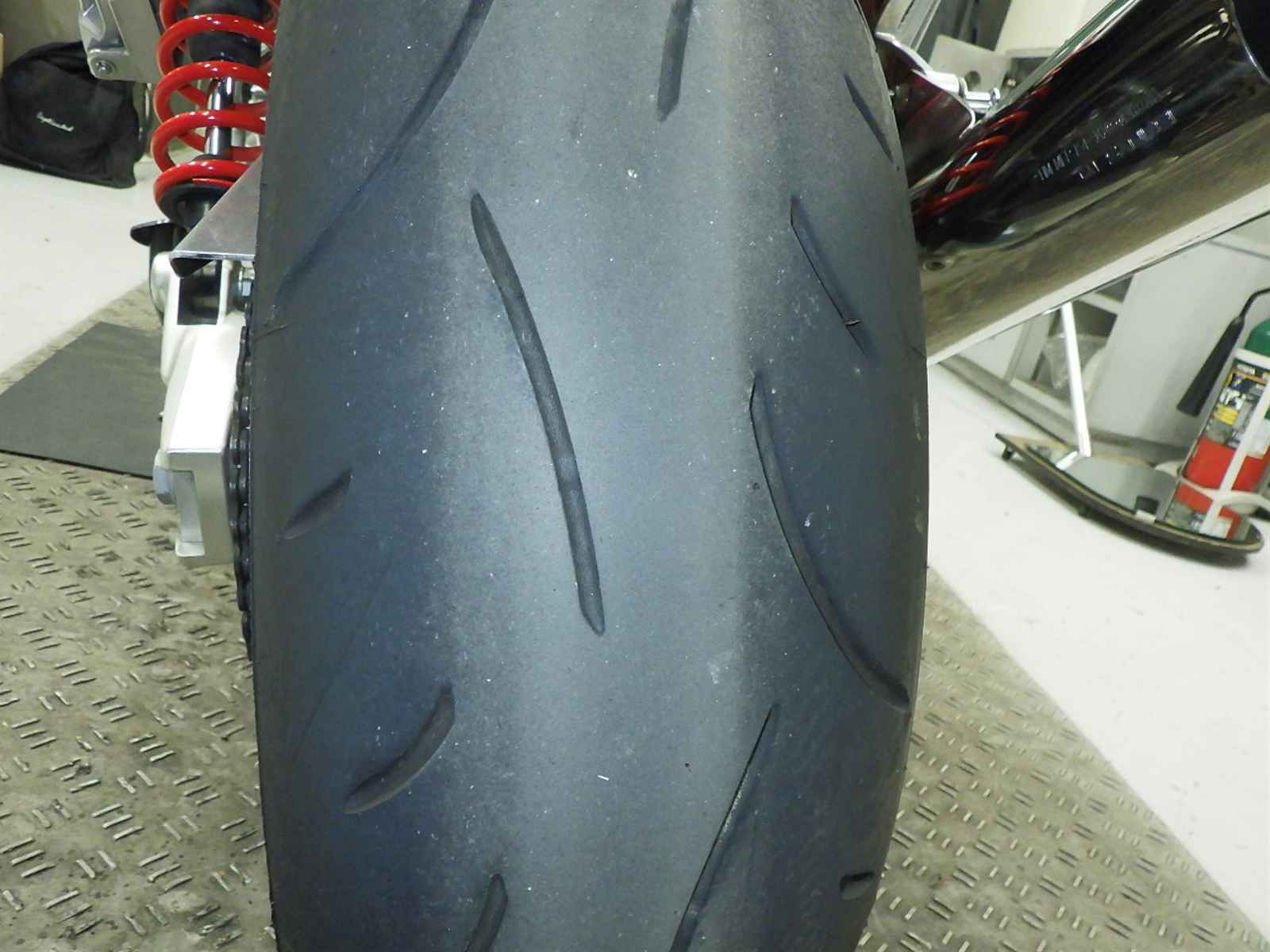 Задняя покрышка: Снижение давления в шине, Трещина требует замены.