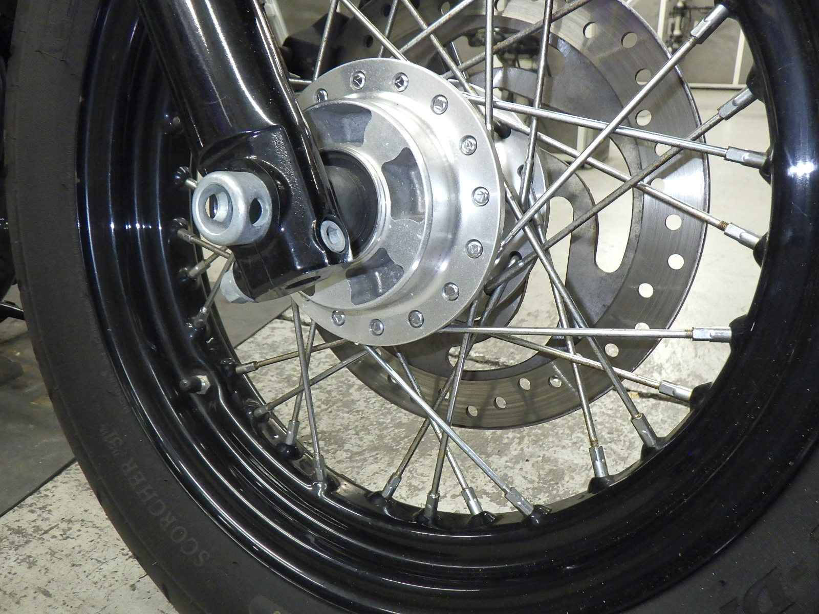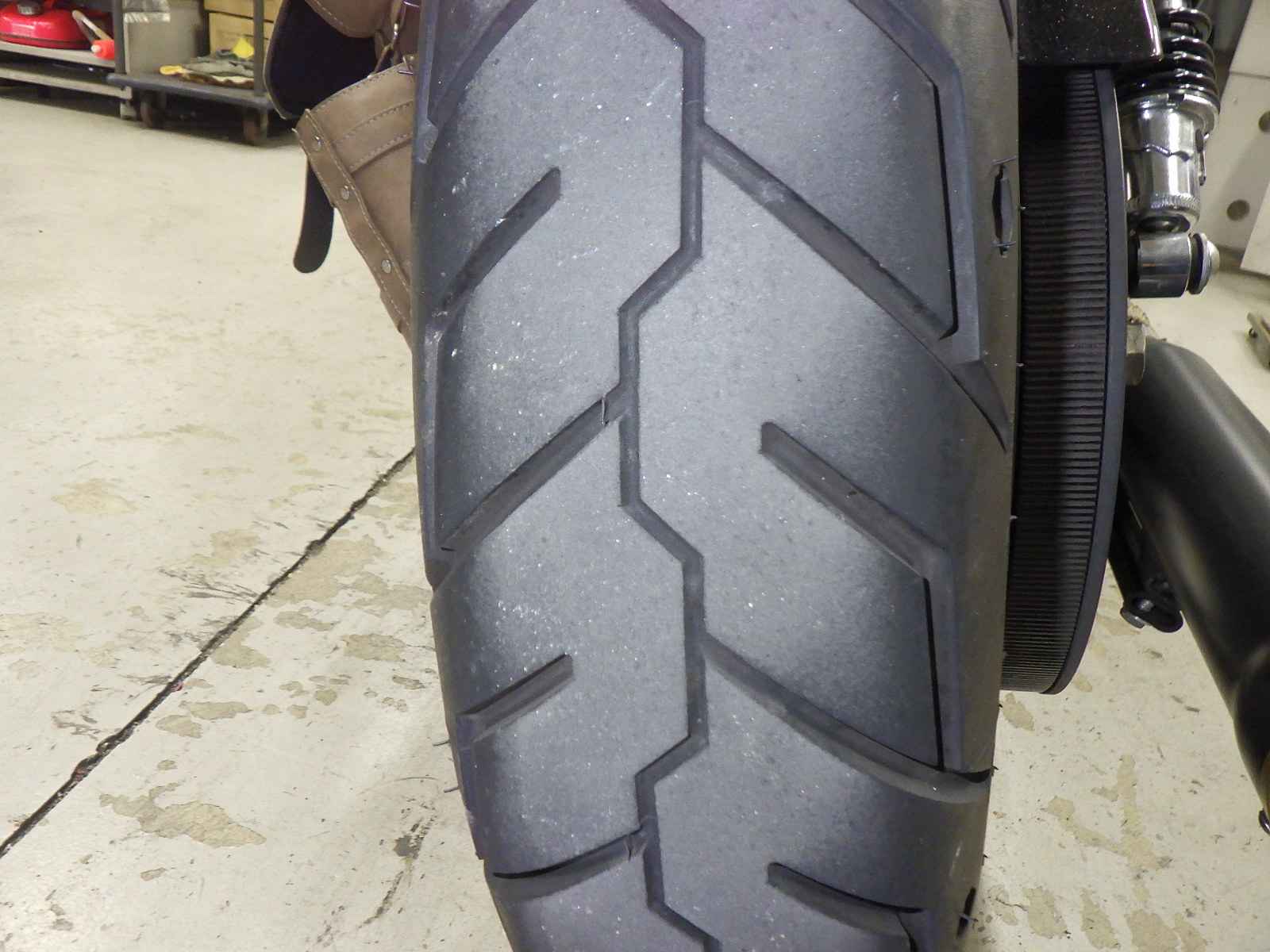 Передняя покрышка: Трещина на шине, требуется замена.