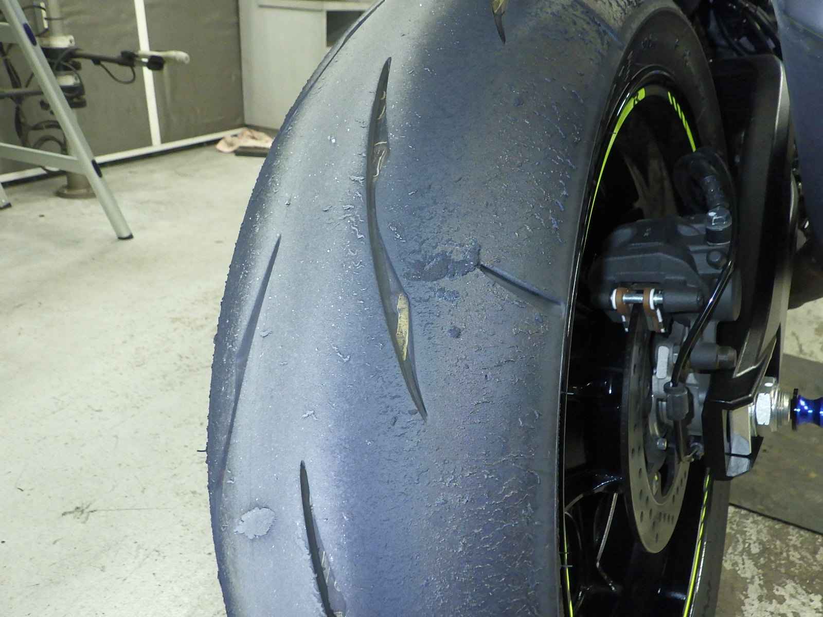 Задняя покрышка: Требуется замена шины, Таять