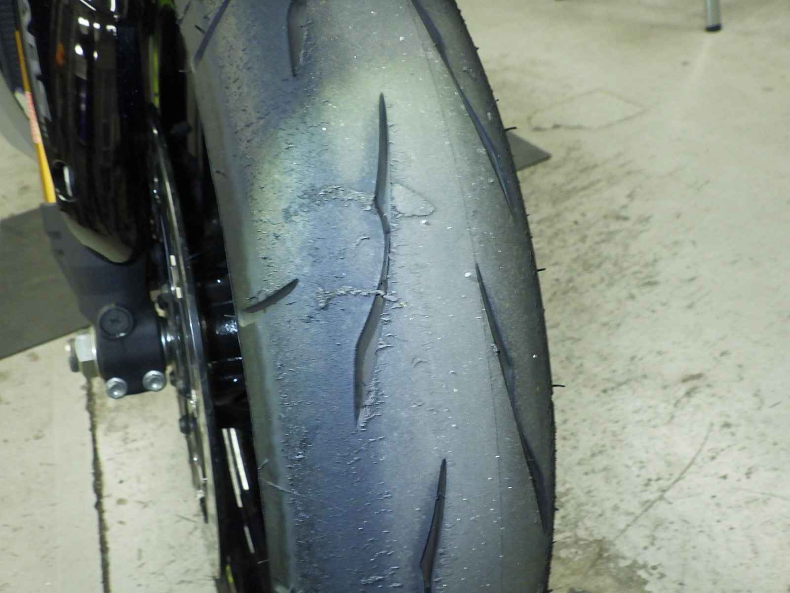 Передняя покрышка: Требуется замена шины, Таять