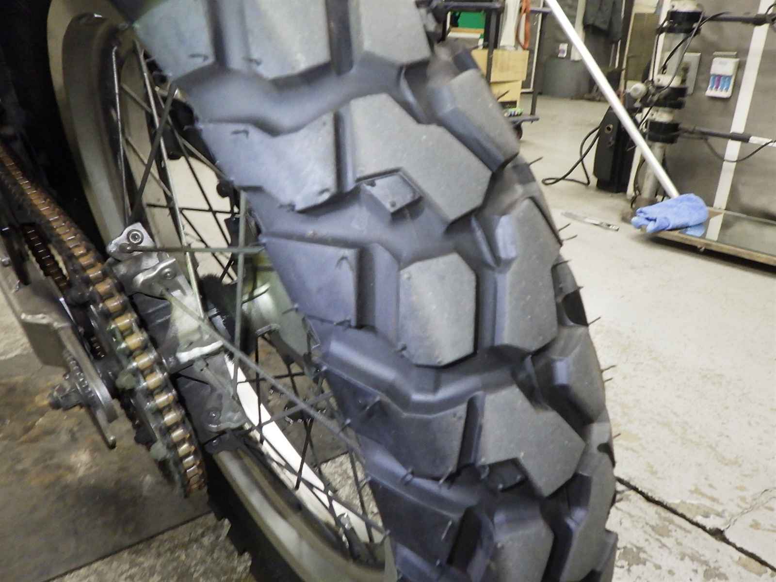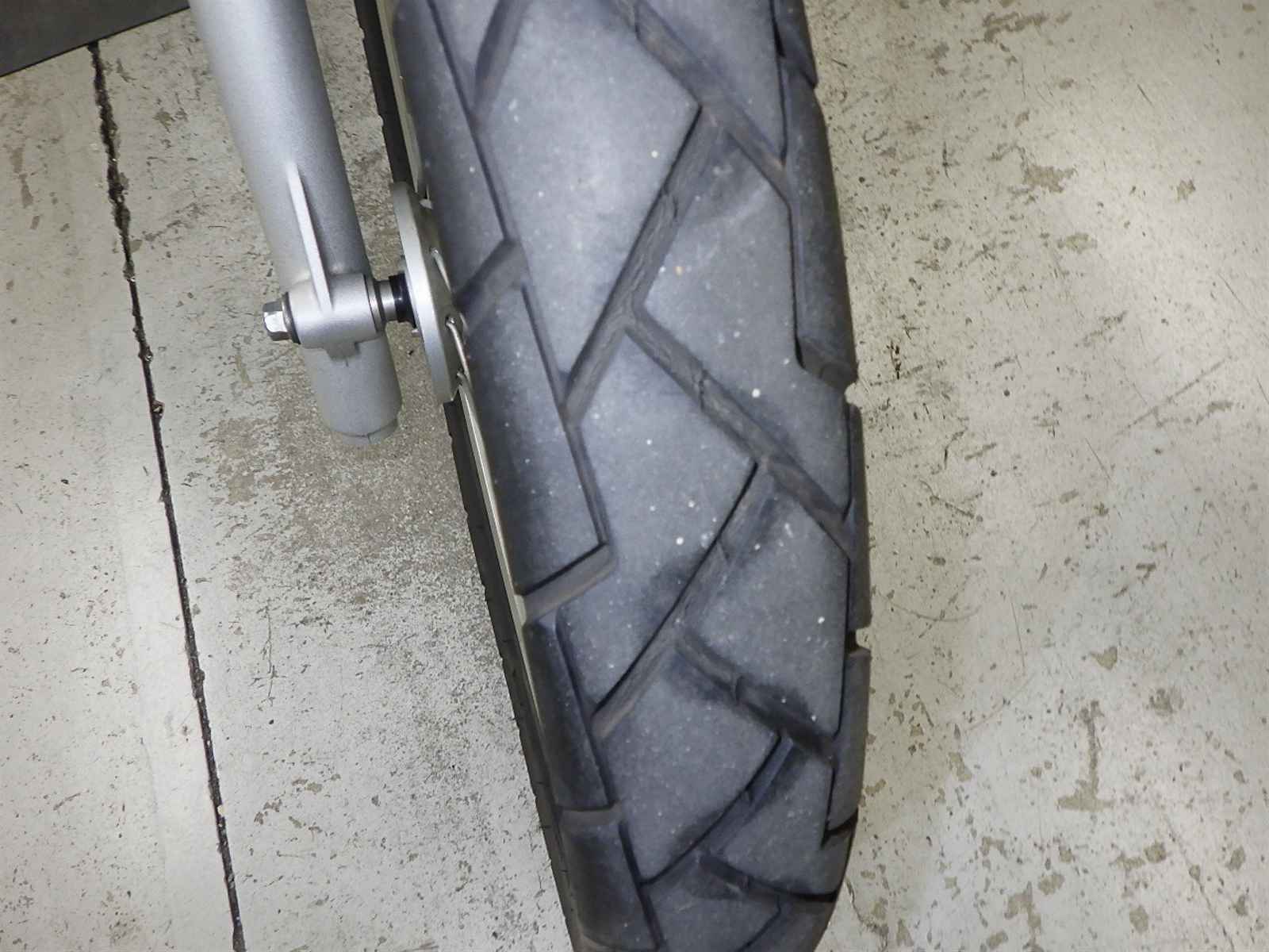 Передняя покрышка: Трещина на шине, требуется замена.