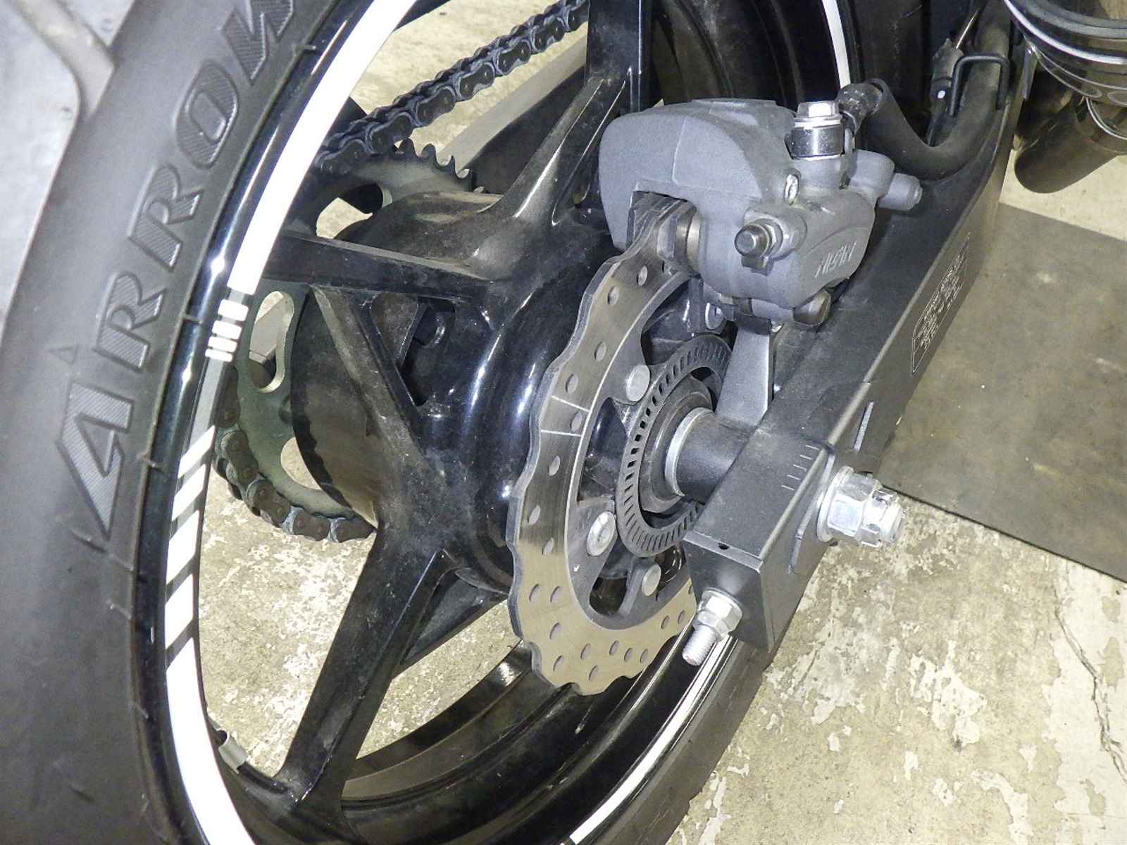 Задняя покрышка: Трещина на шине, требуется замена.