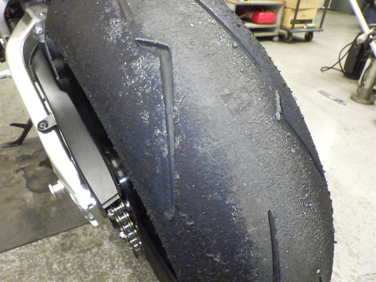 Задняя покрышка: Требуется замена шины, Таять
