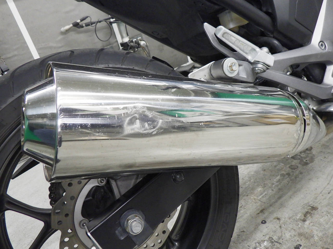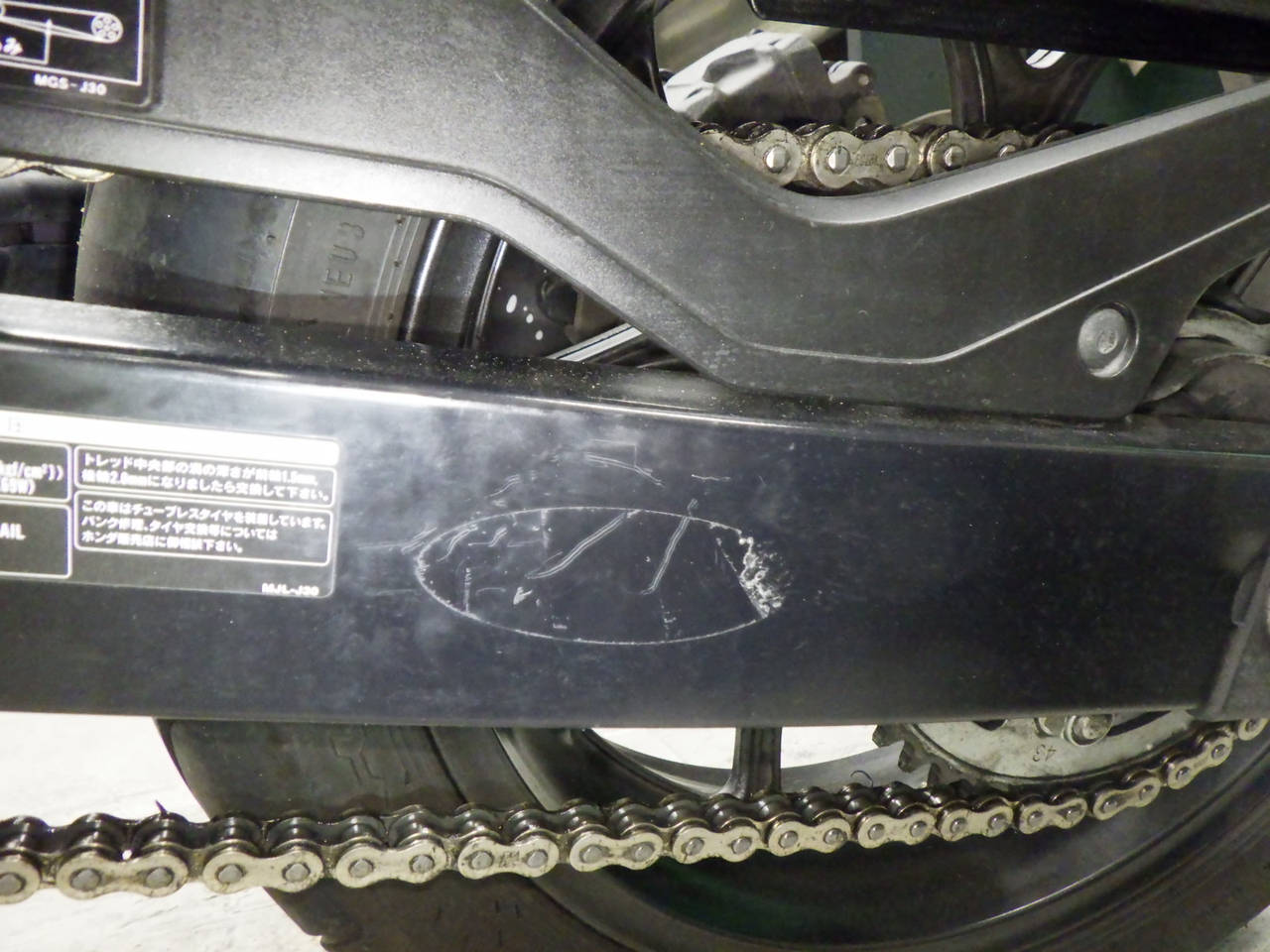 Задняя покрышка: Трещина на шине, требуется замена.