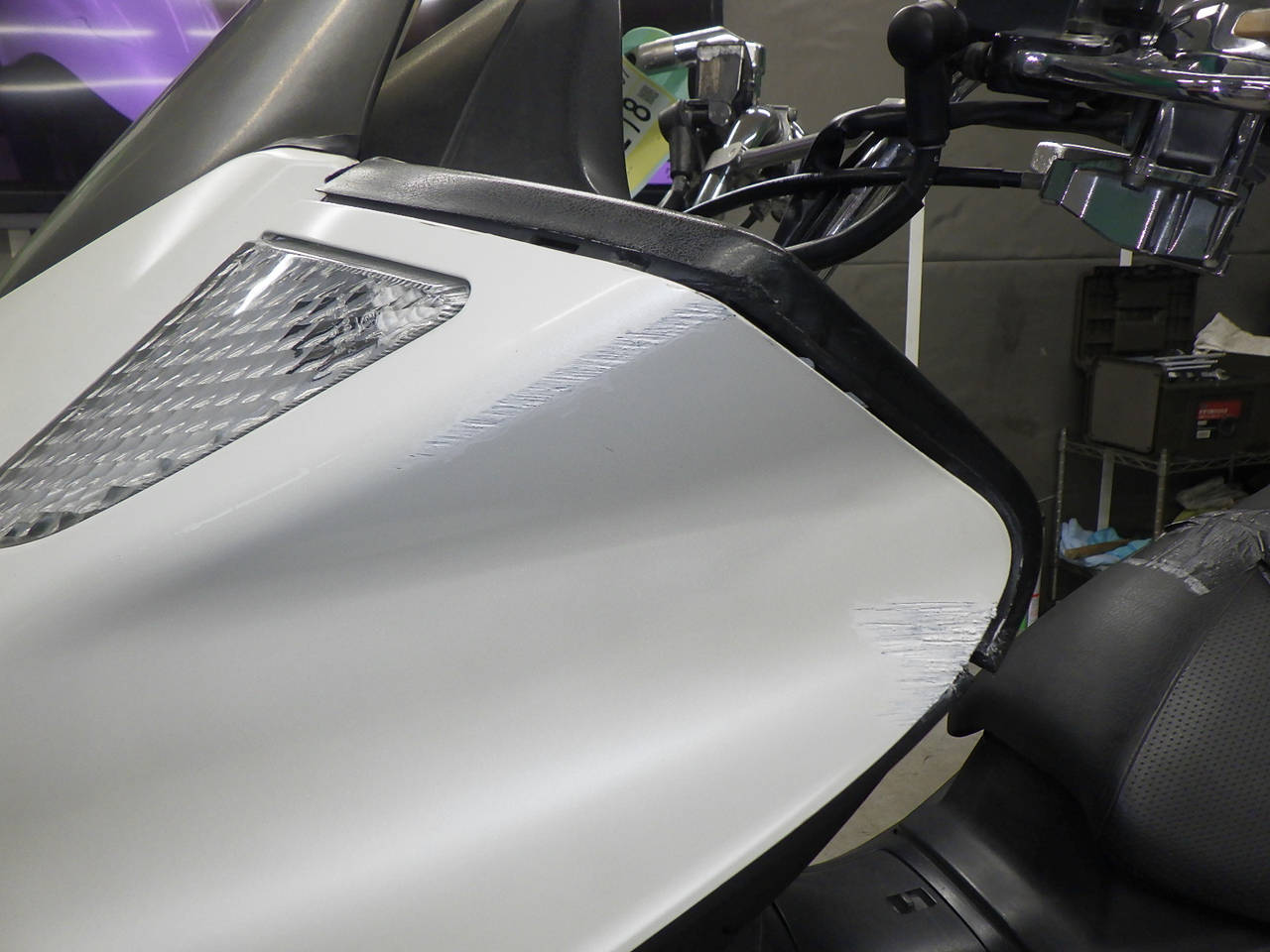 Передние тормоза: Требуется замена тормозного диска., Повреждение лакокрасочного покрытия главной части от ударов Уровень 3