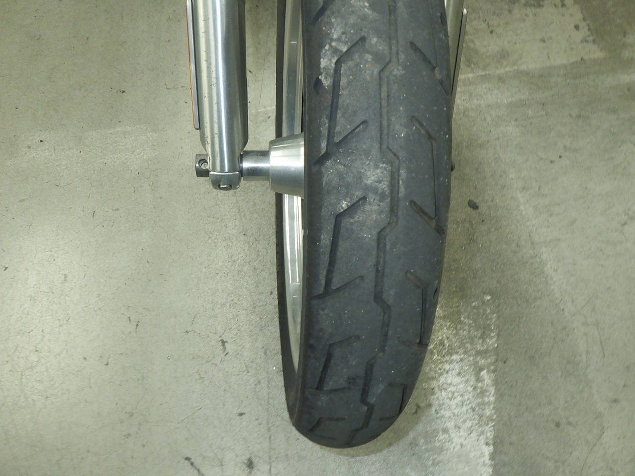 Передняя покрышка: Снижение давления в шине, Трещина требует замены.