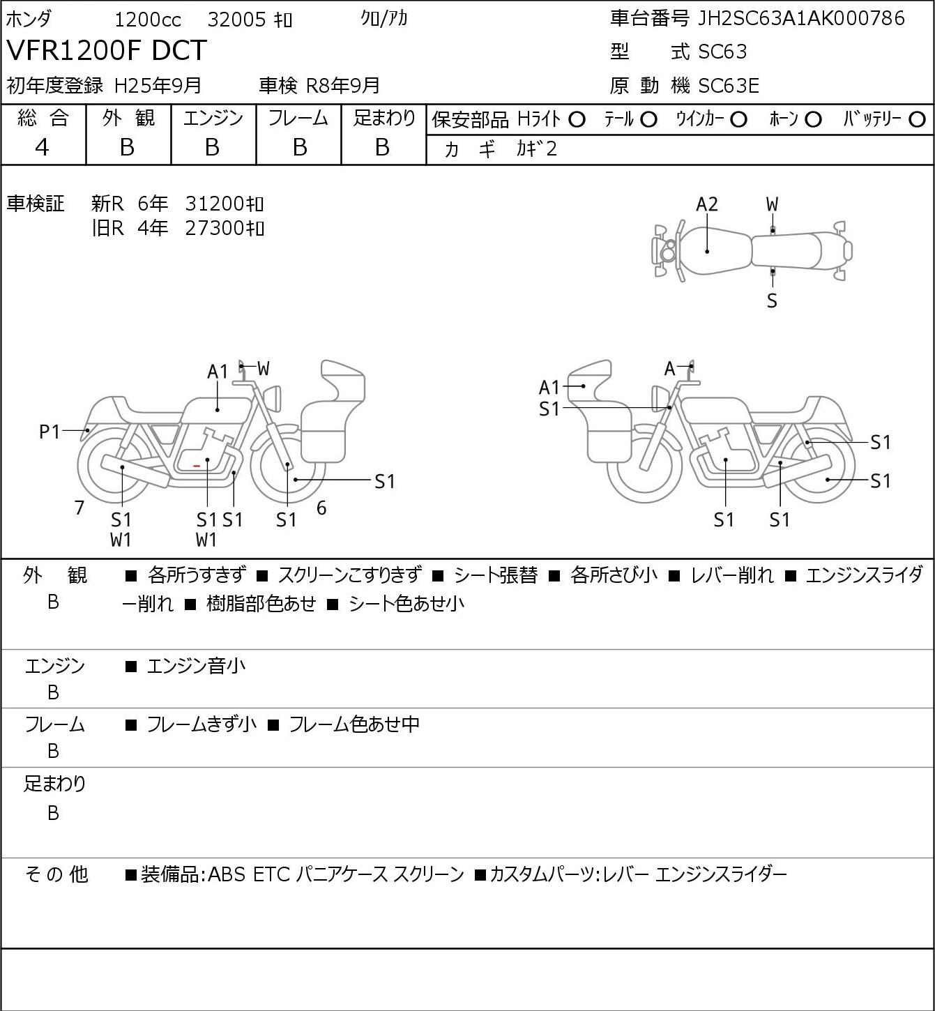 Номер рамы: JH2SC63A1AK000786