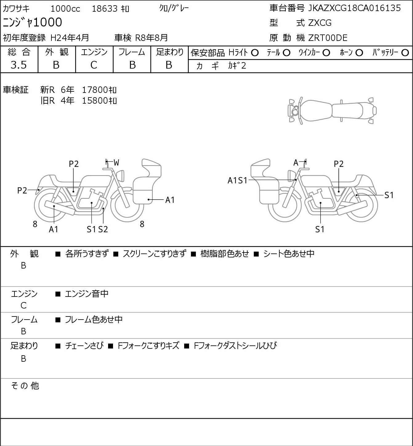 Номер рамы: JKAZXCG18CA016135