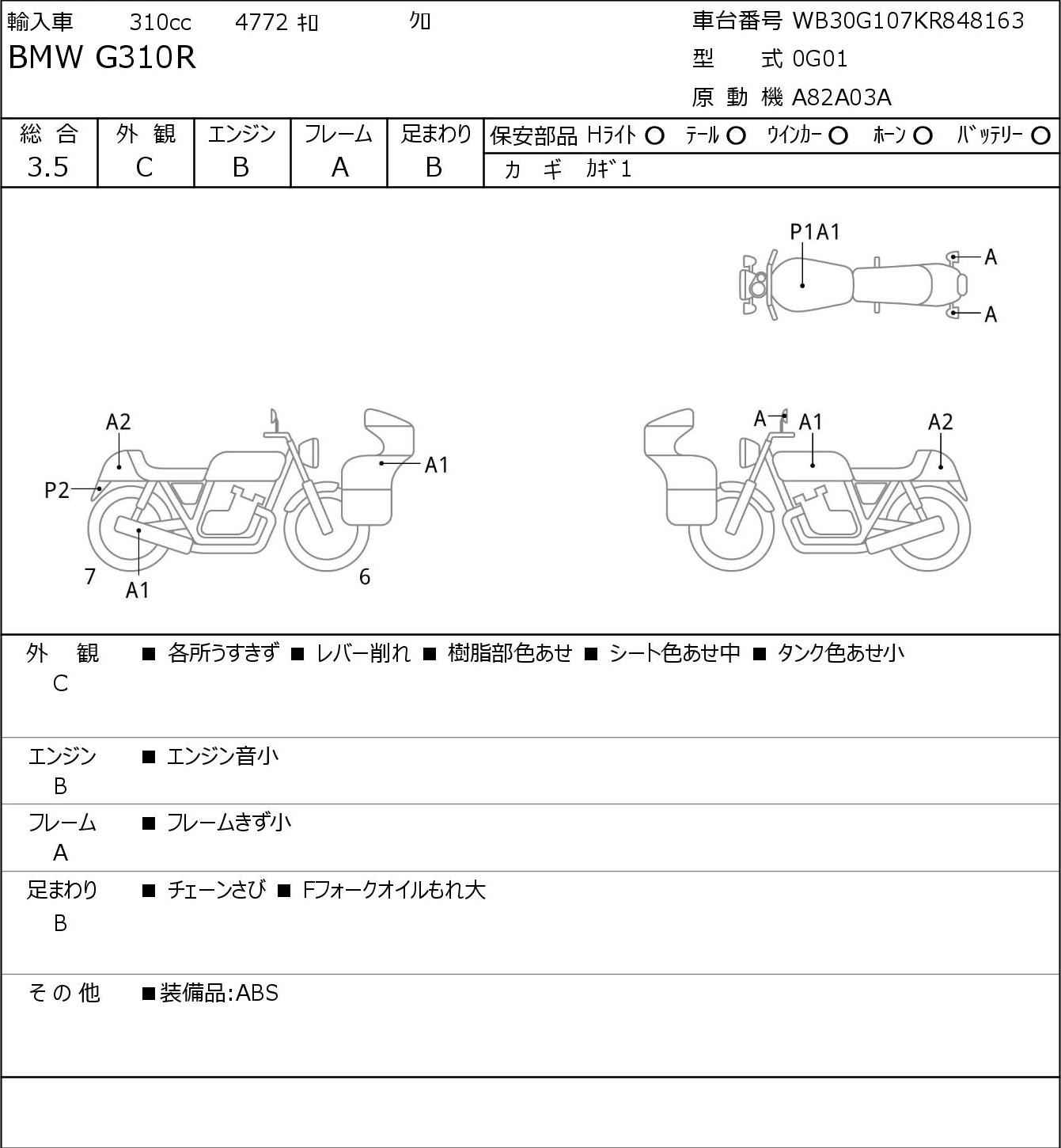 Номер рамы: WB30G107KR848163