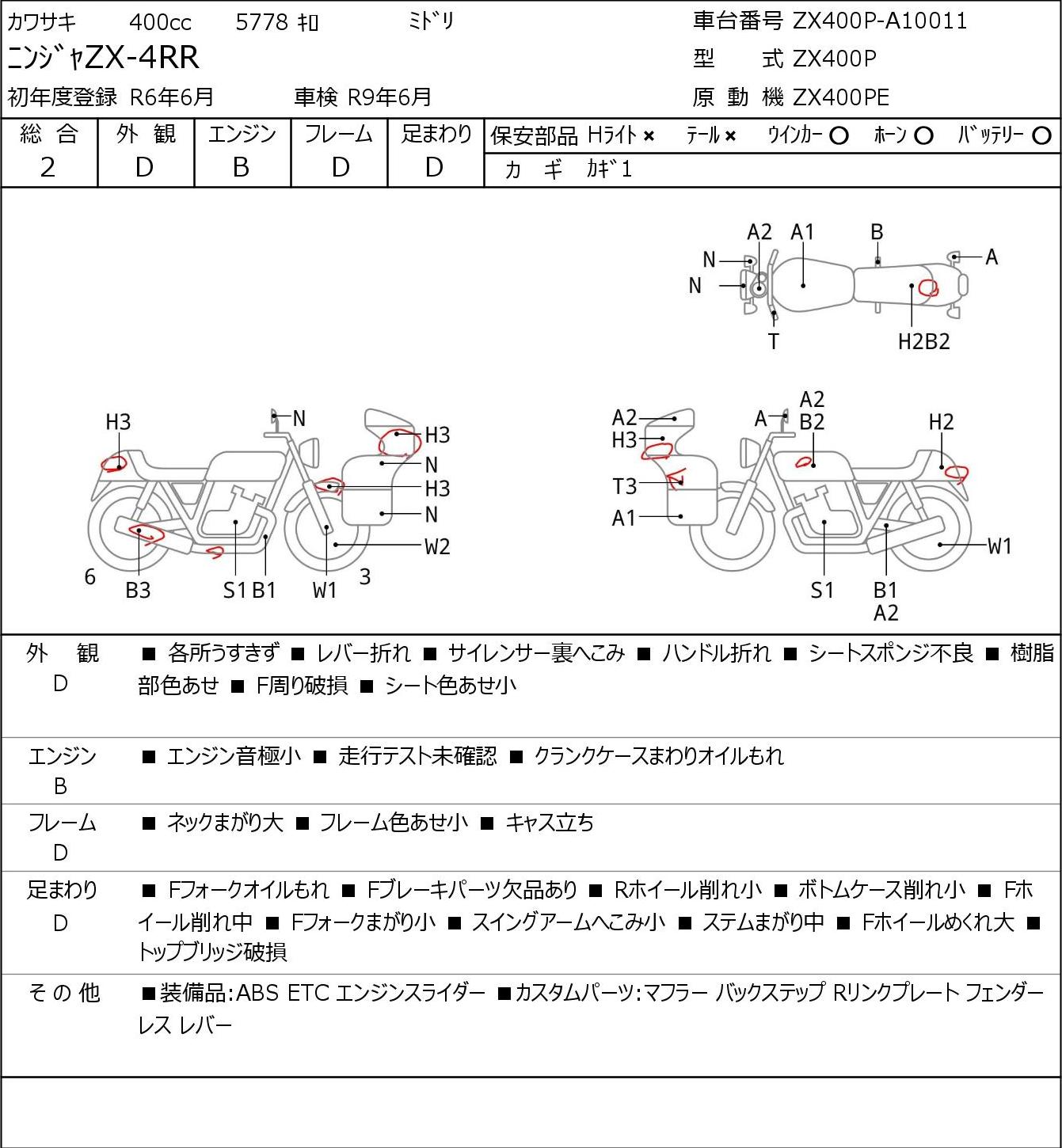 Номер рамы: ZX400P-A10011