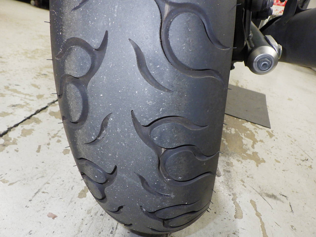 Передняя покрышка: Снижение давления в шине, Трещина требует замены.