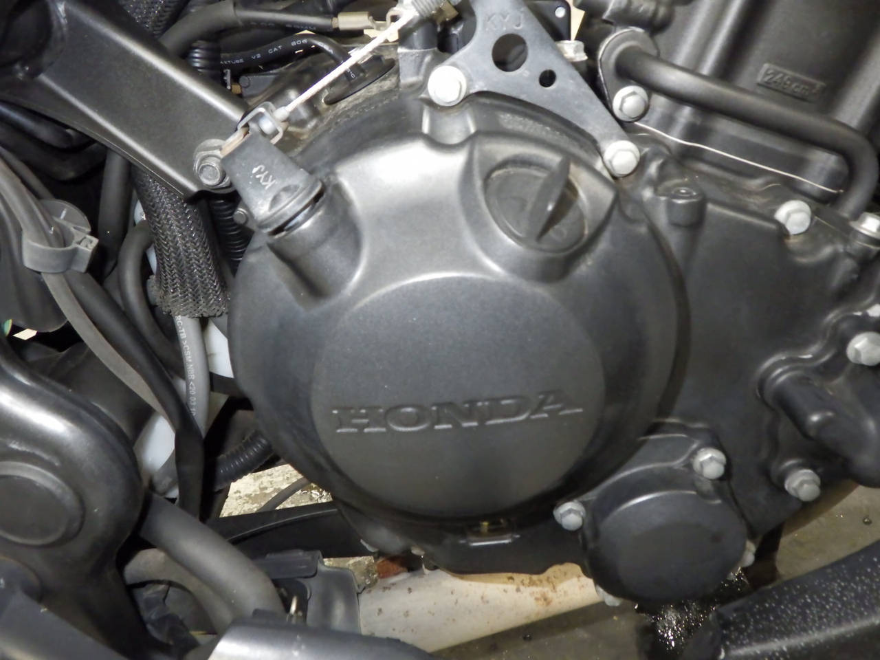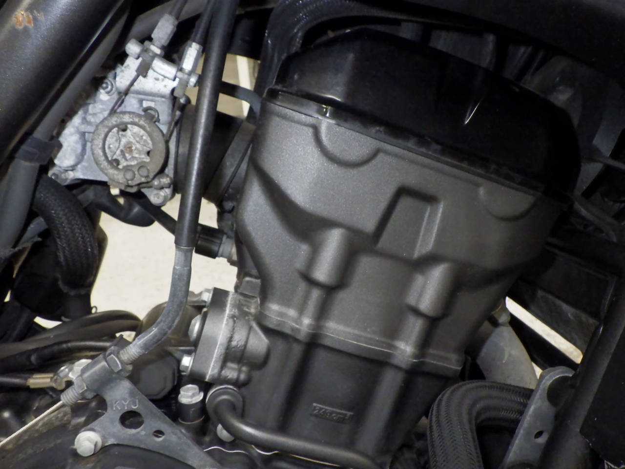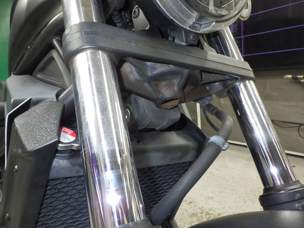 タンク外観確認出来ず。各所キズ、サビ、変色。前足回りねじれ。