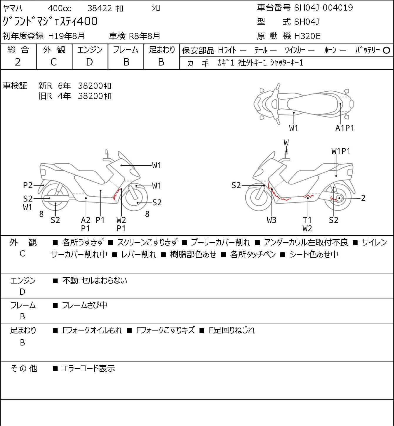 Номер рамы: SH04J-004019