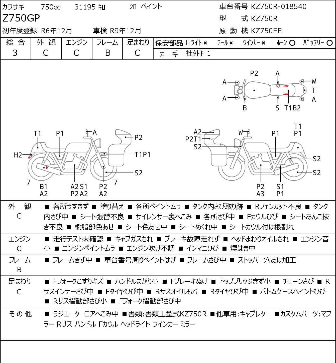 Номер рамы: KZ750R-018540