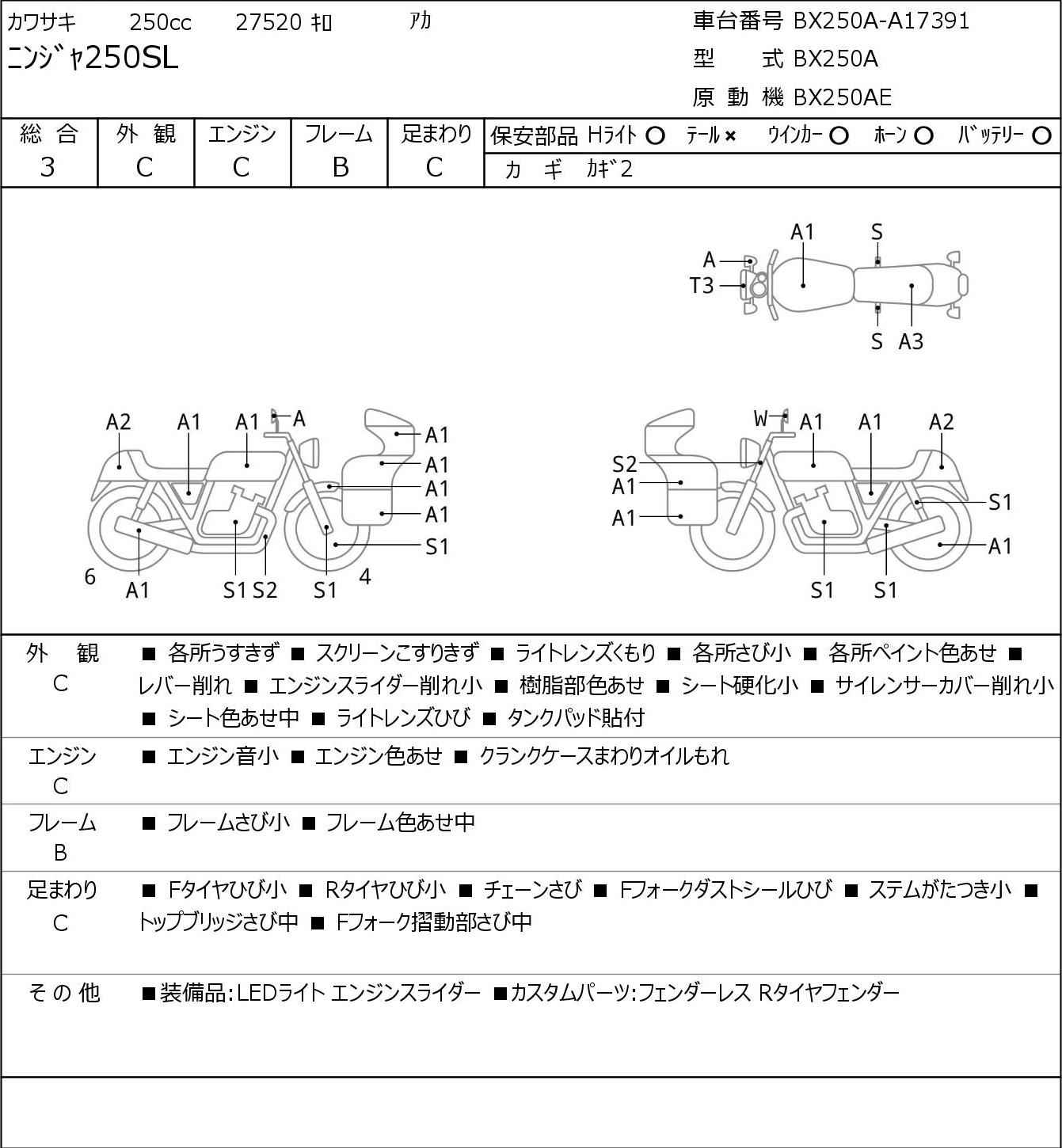Номер рамы: BX250A-A17391