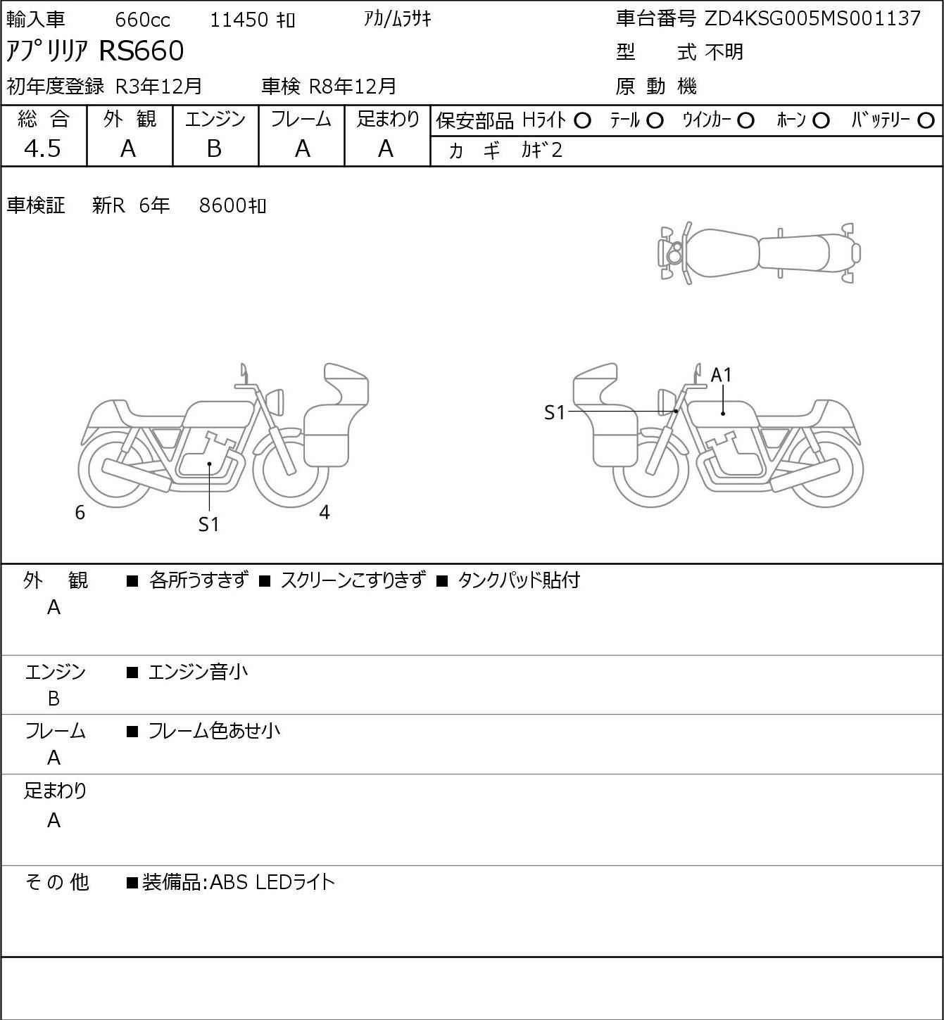 Номер рамы: ZD4KSG005MS001137