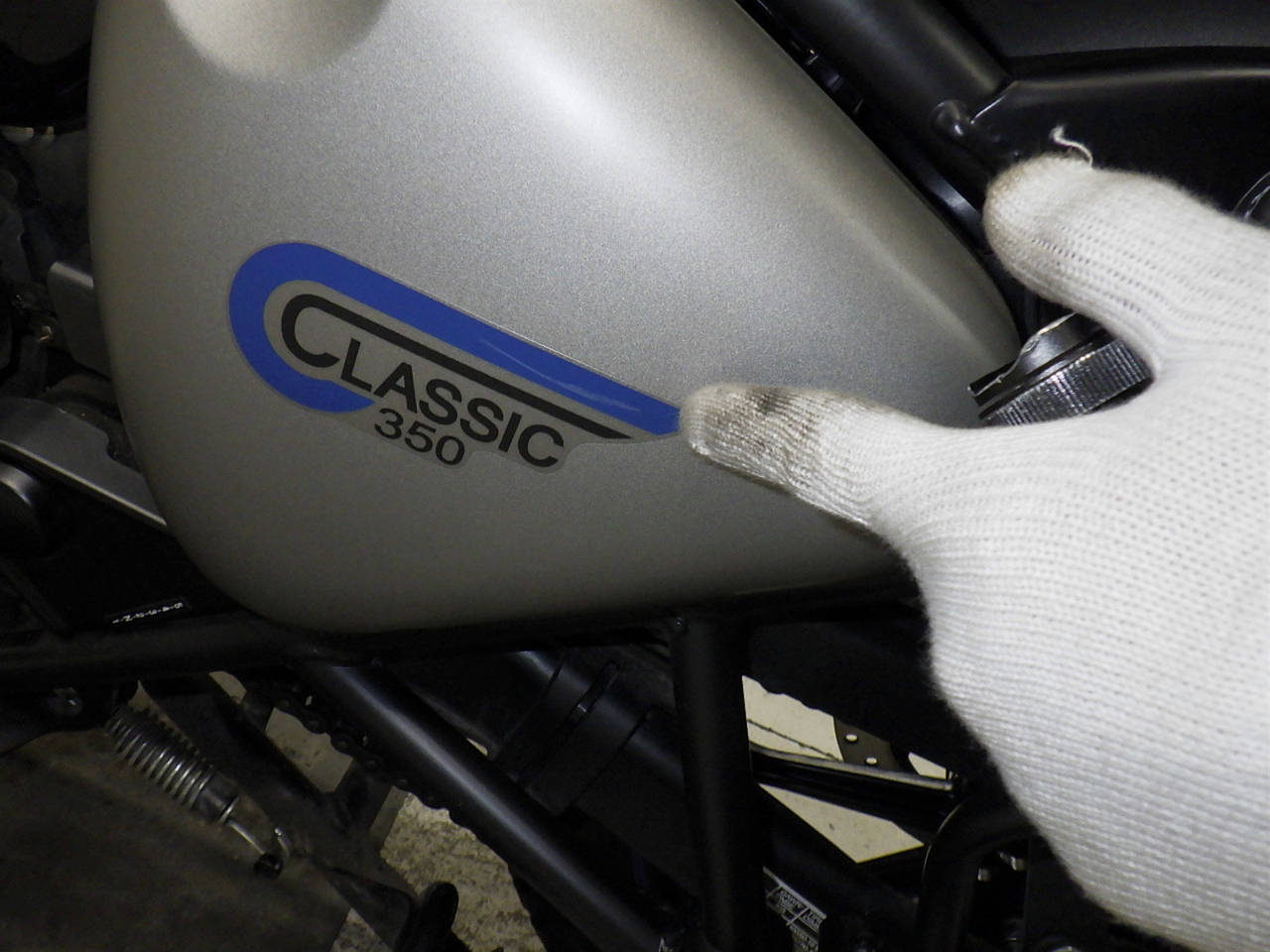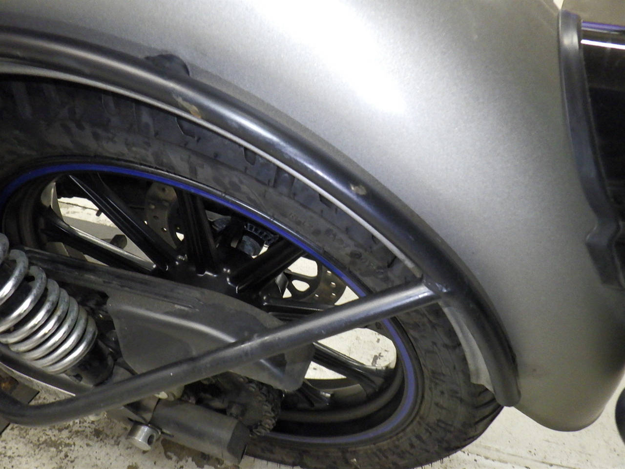 Переднее крыло: Краска на переднем крыле мотоцикла стерлась, есть недочеты.