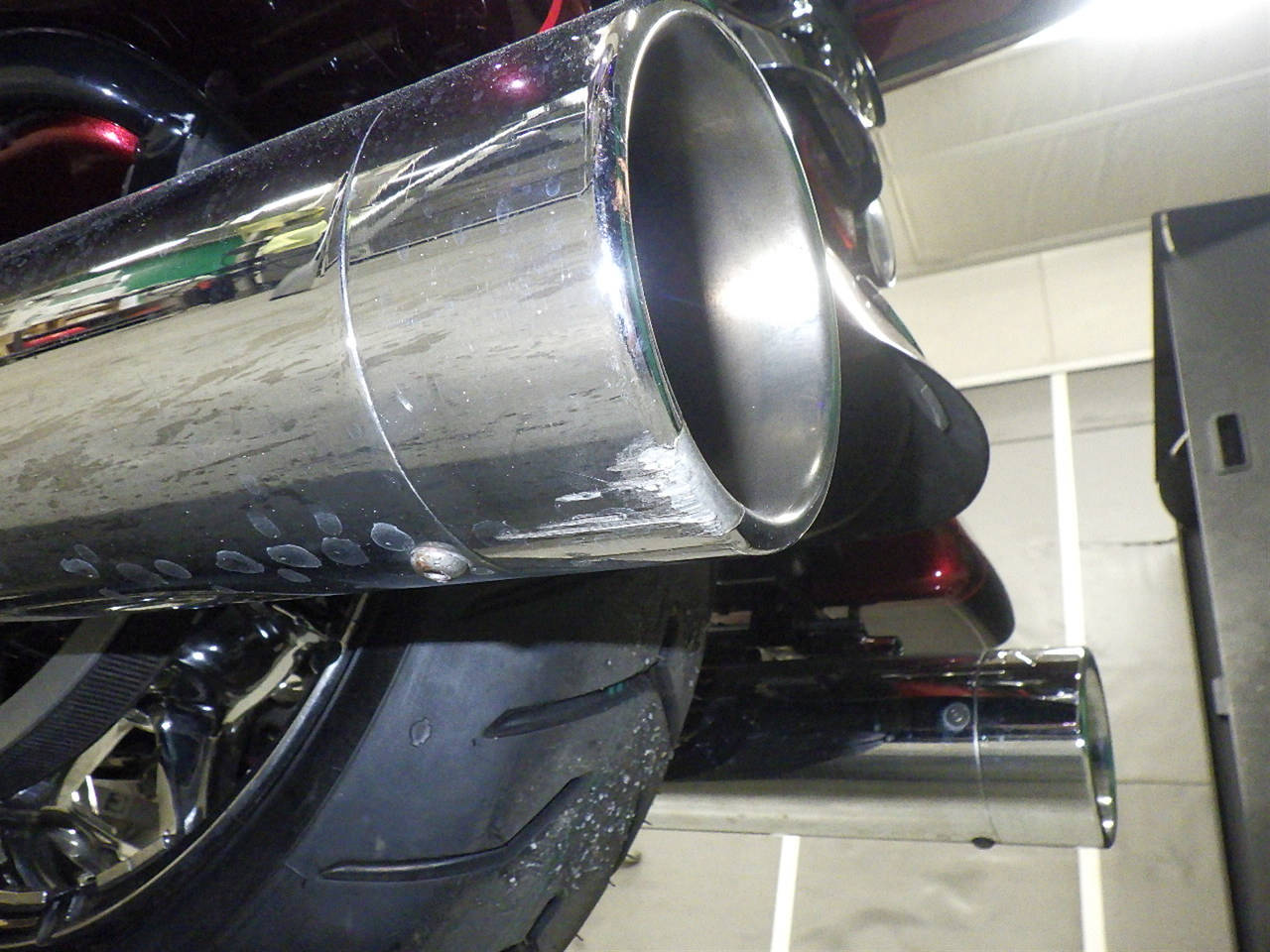 Выхлопная труба: Окисление на выхлопной трубе Уровень 3, Недочет покрытия Уровень 3, Вмятина