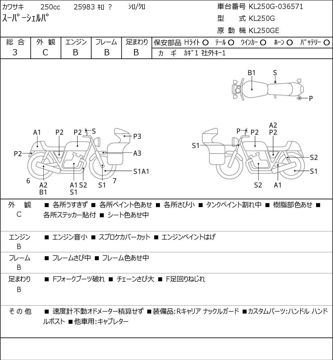 Номер рамы: KL250G-036571