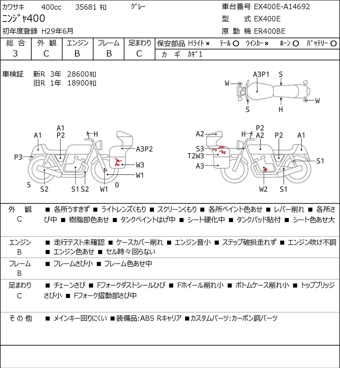 Номер рамы: EX400E-A14692