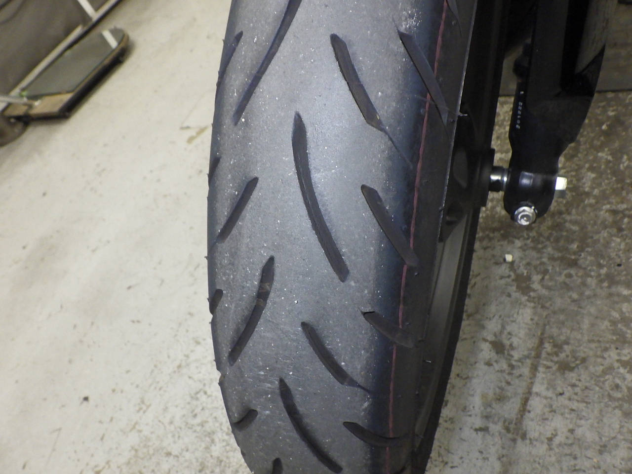 Передняя покрышка: Снижение давления в шине, Трещина требует замены.