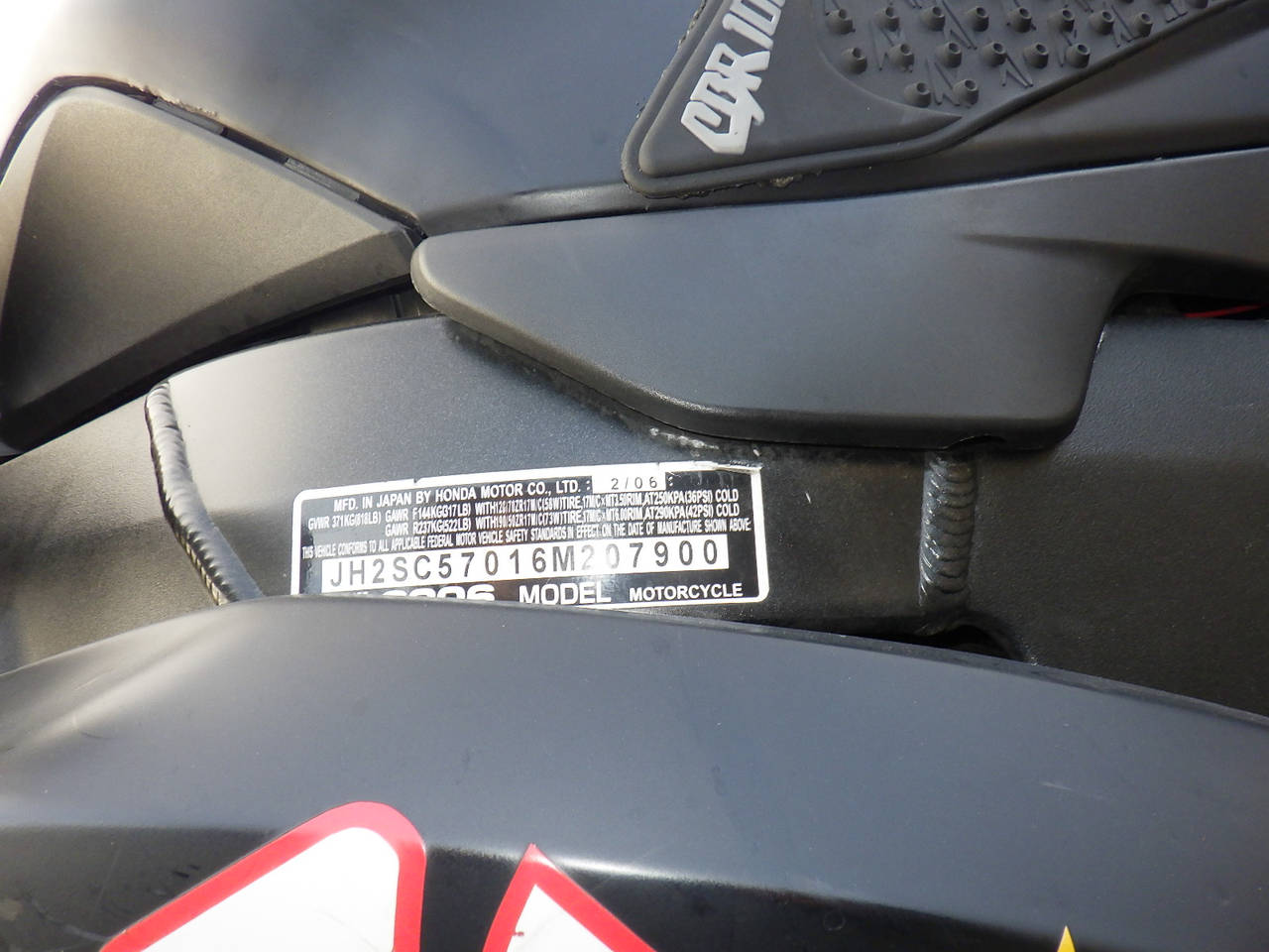 Номер рамы: JH2SC57016M207900