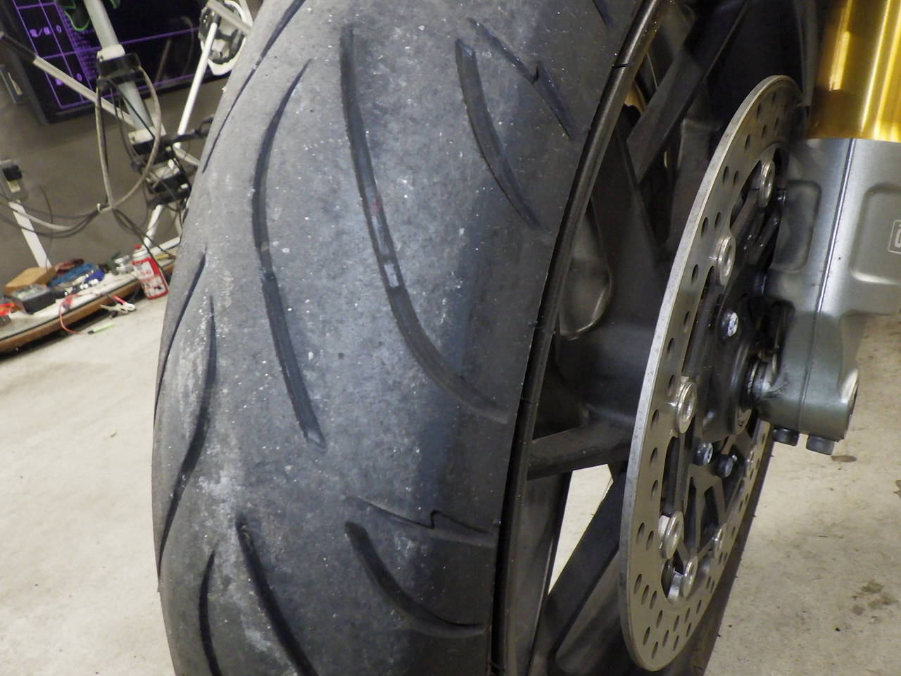 Передняя покрышка: Снижение давления в шине, Трещина, Требуется замена