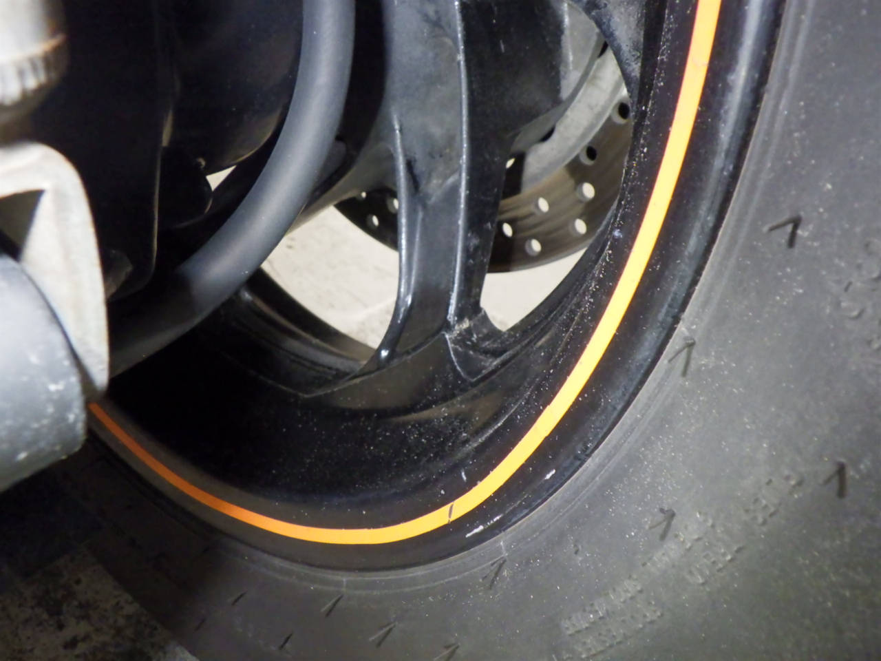 Передняя покрышка: Снижение давления в шине, Трещина