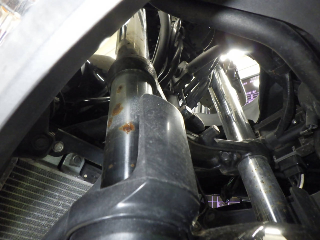 インナーカウル変色大。前足回りねじれ。