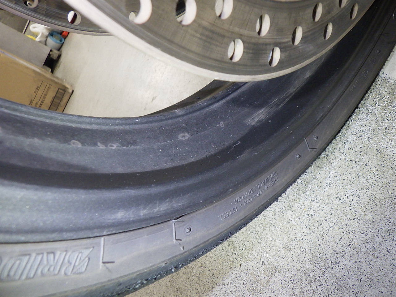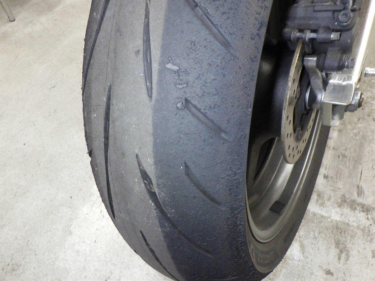 Задняя покрышка: Требуется замена изношенного шины., Таять