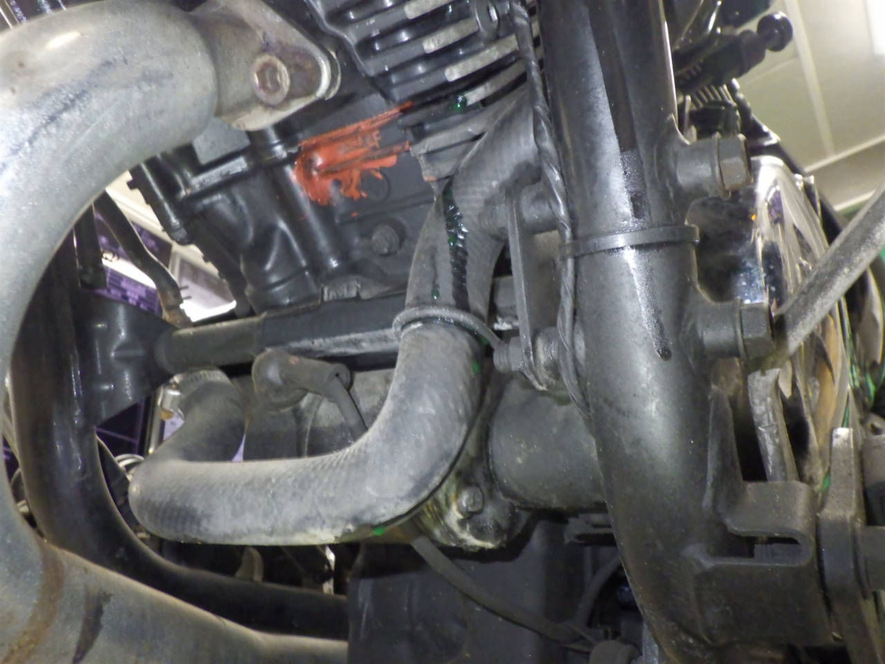 クーラント漏れ大。ラジエターキャップ社外。全体キズ、サビ多。各所仕上げ油。