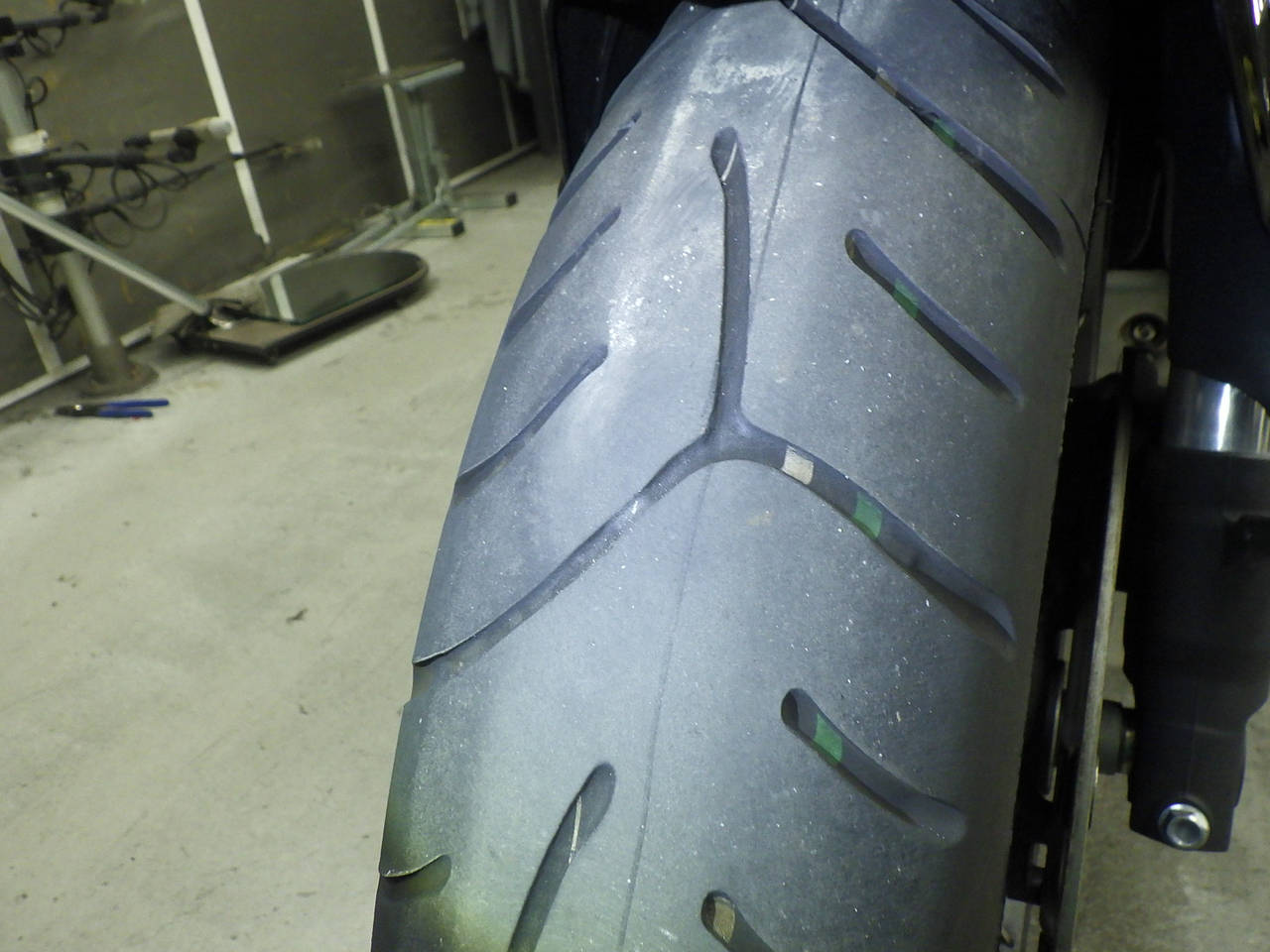 Передняя покрышка: Требуется замена изношенного шины.