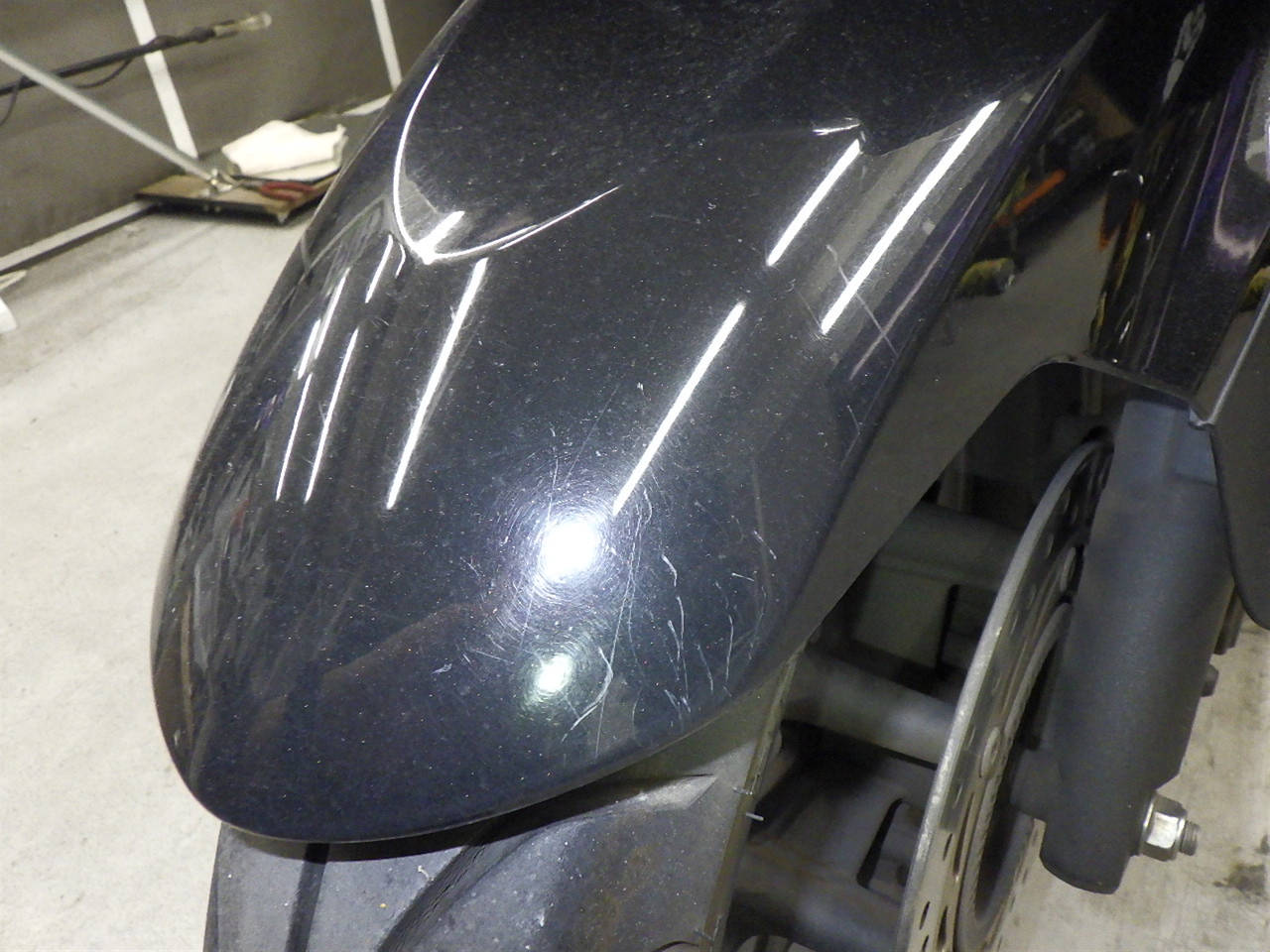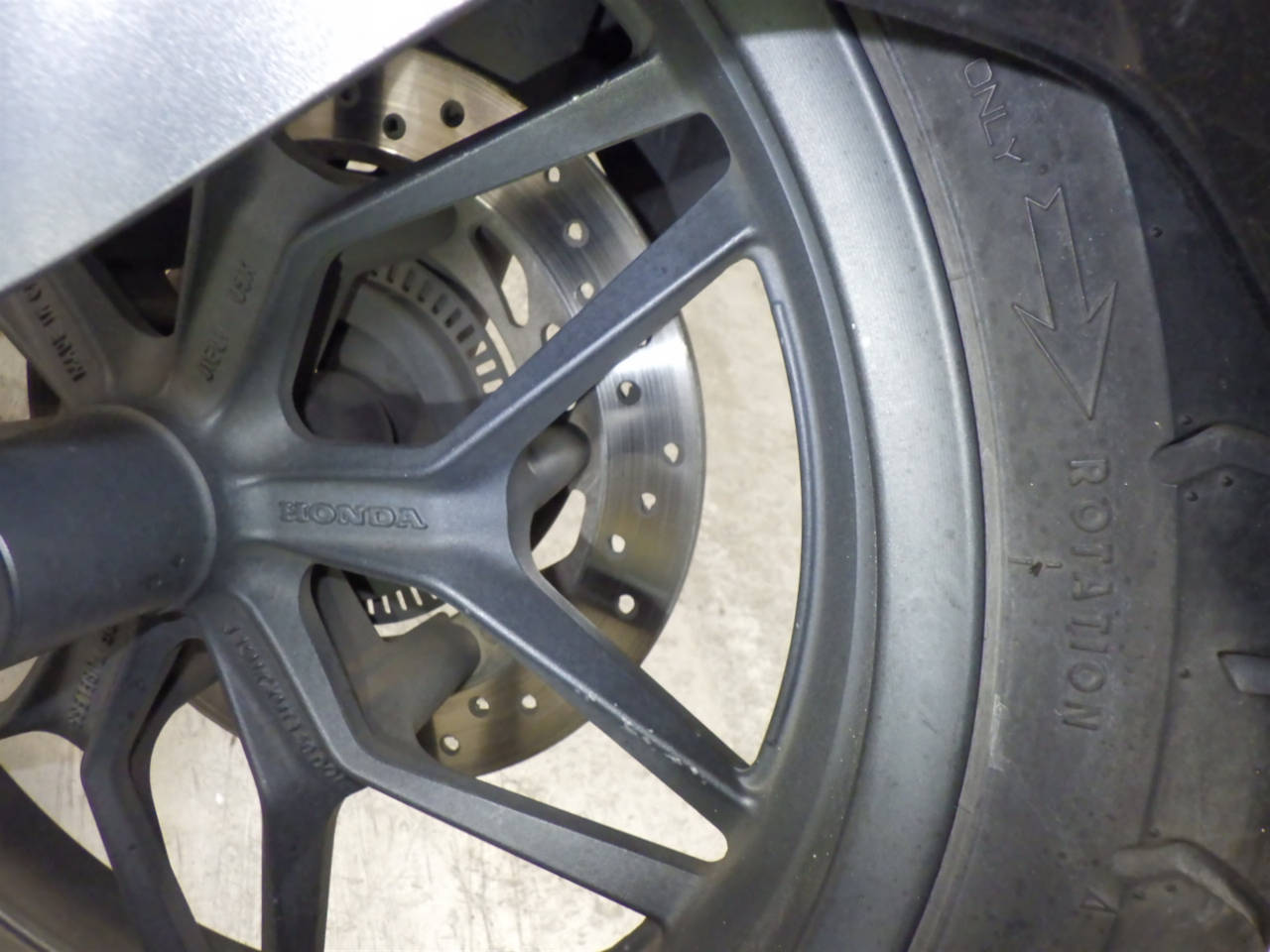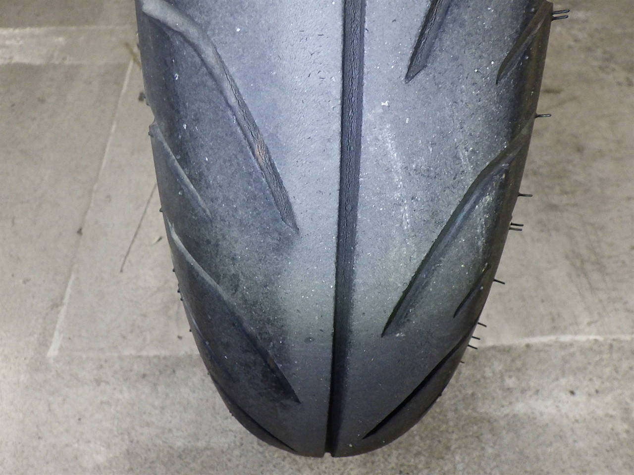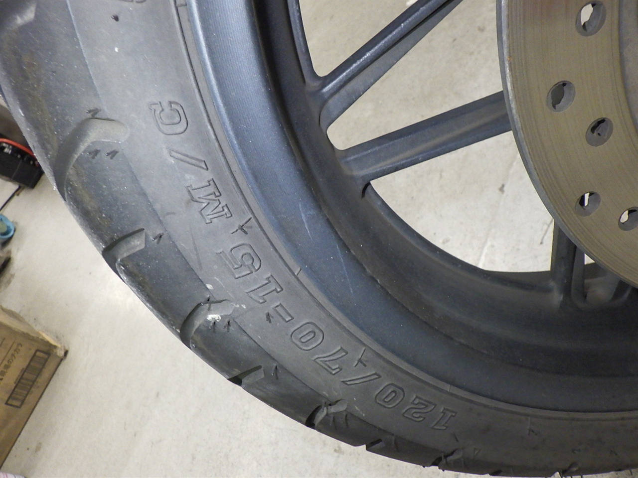 Передняя покрышка: Трещина на шине, требуется замена.