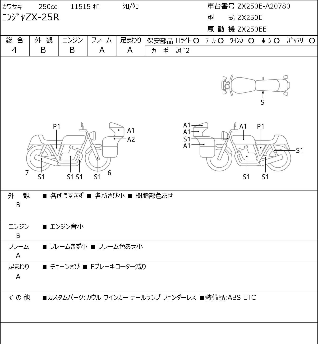 Номер рамы: ZX250E-A20780