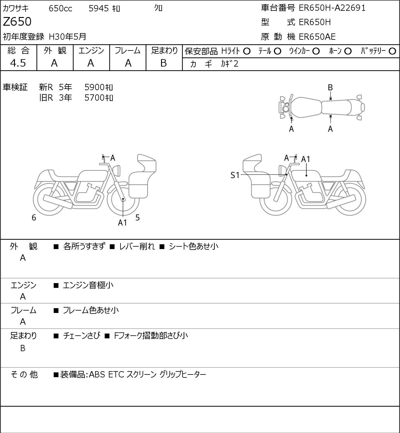Номер рамы: ER650H-A22691
