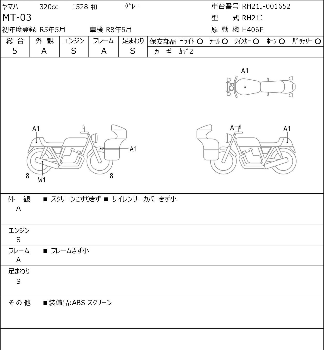 Номер рамы: RH21J-001652