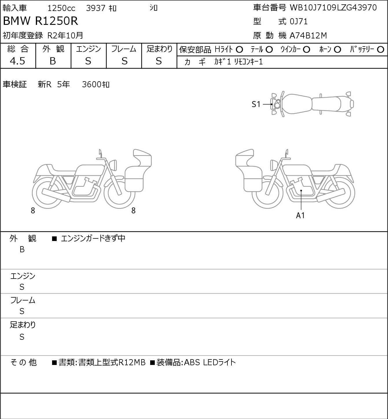 Номер рамы: WB10J7109LZG43970