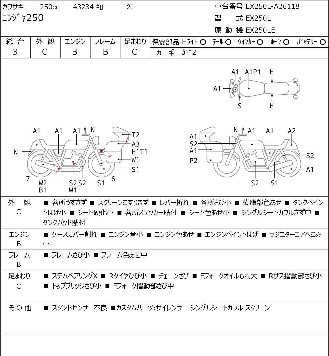 Номер рамы: EX250L-A26118