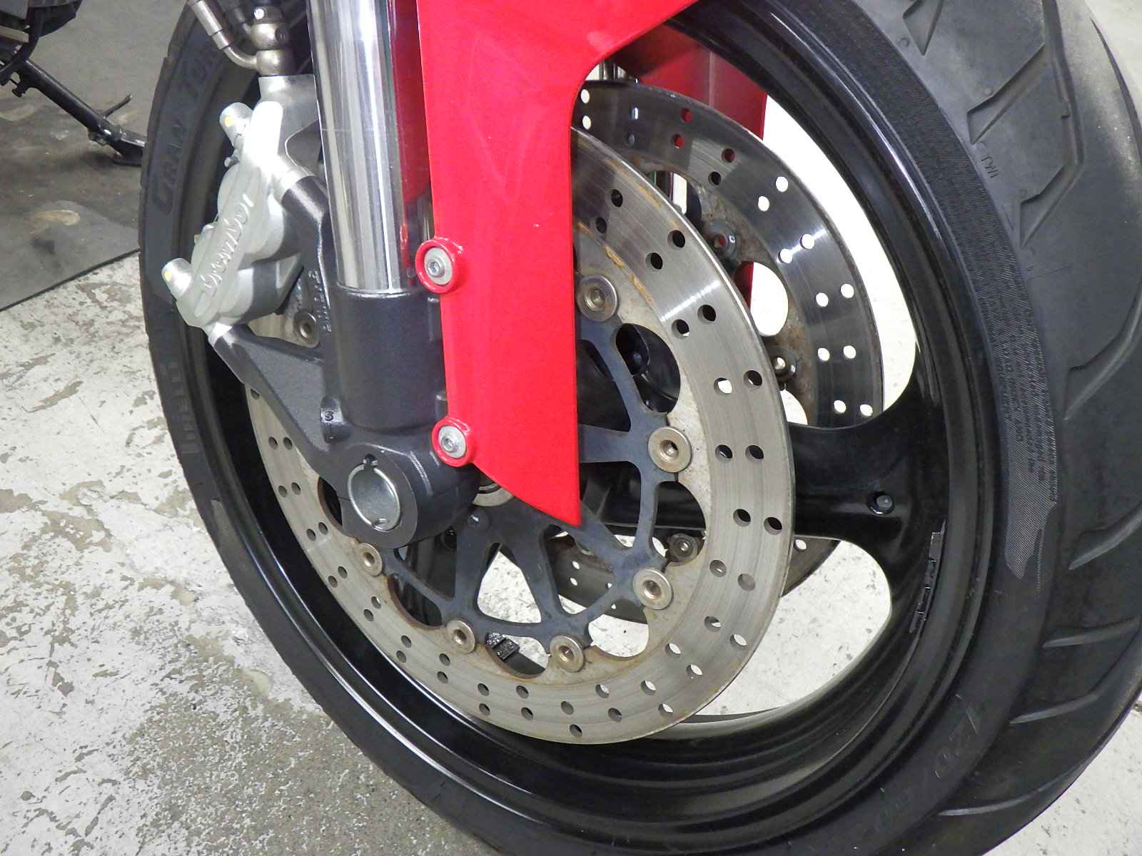 Перо вилки: Мотоцикл имеет отслоение краски.
