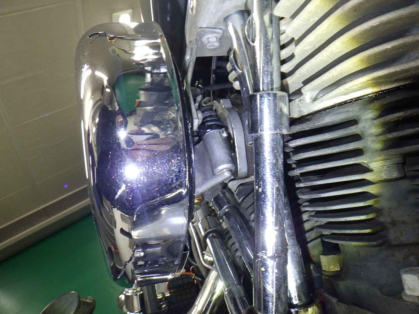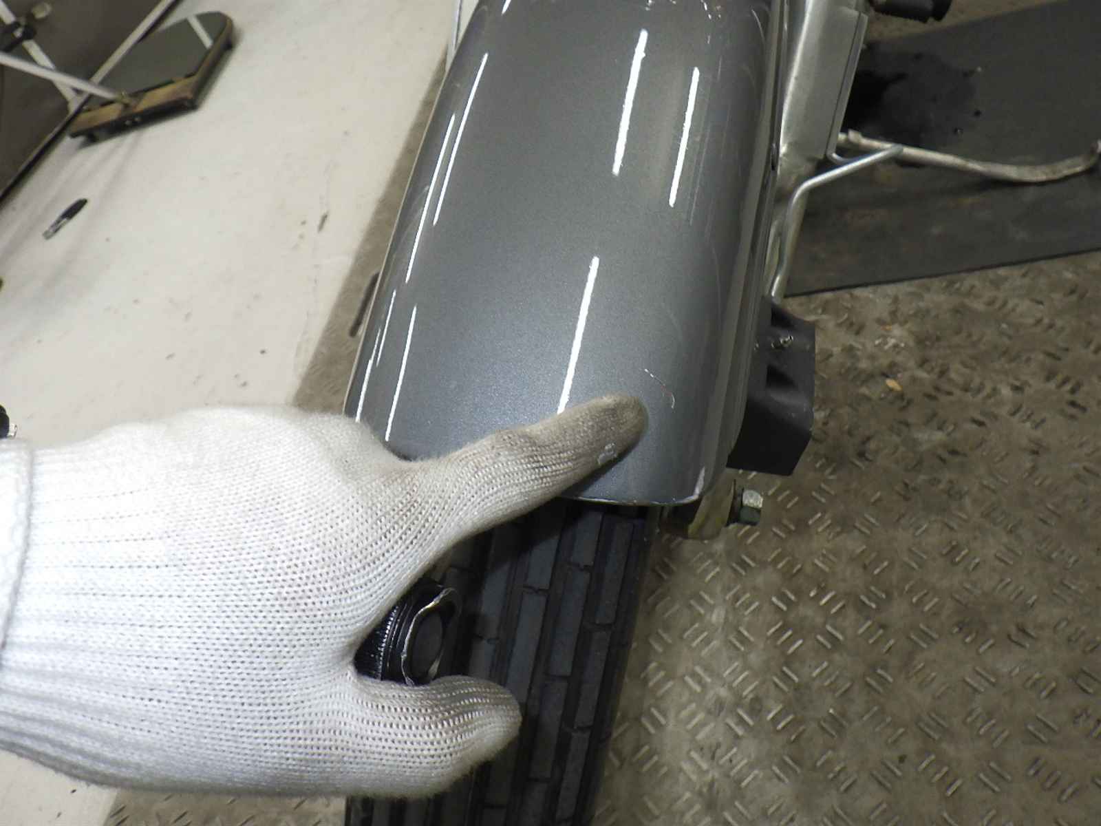 Переднее крыло: Краска на переднем крыле мотоцикла стерлась, есть недочеты.