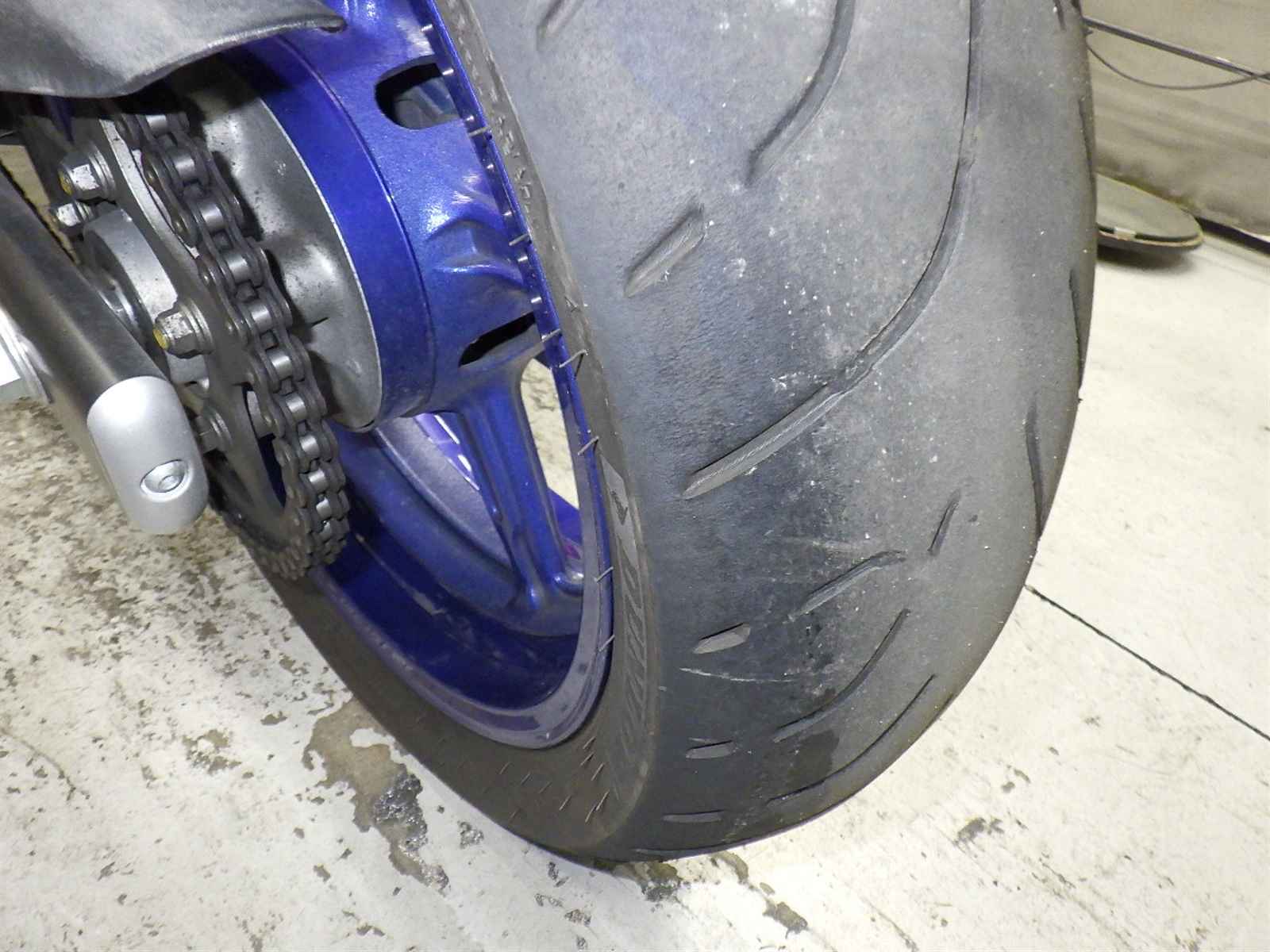 Задняя покрышка: Снижение давления в шине, Трещина требует замены.