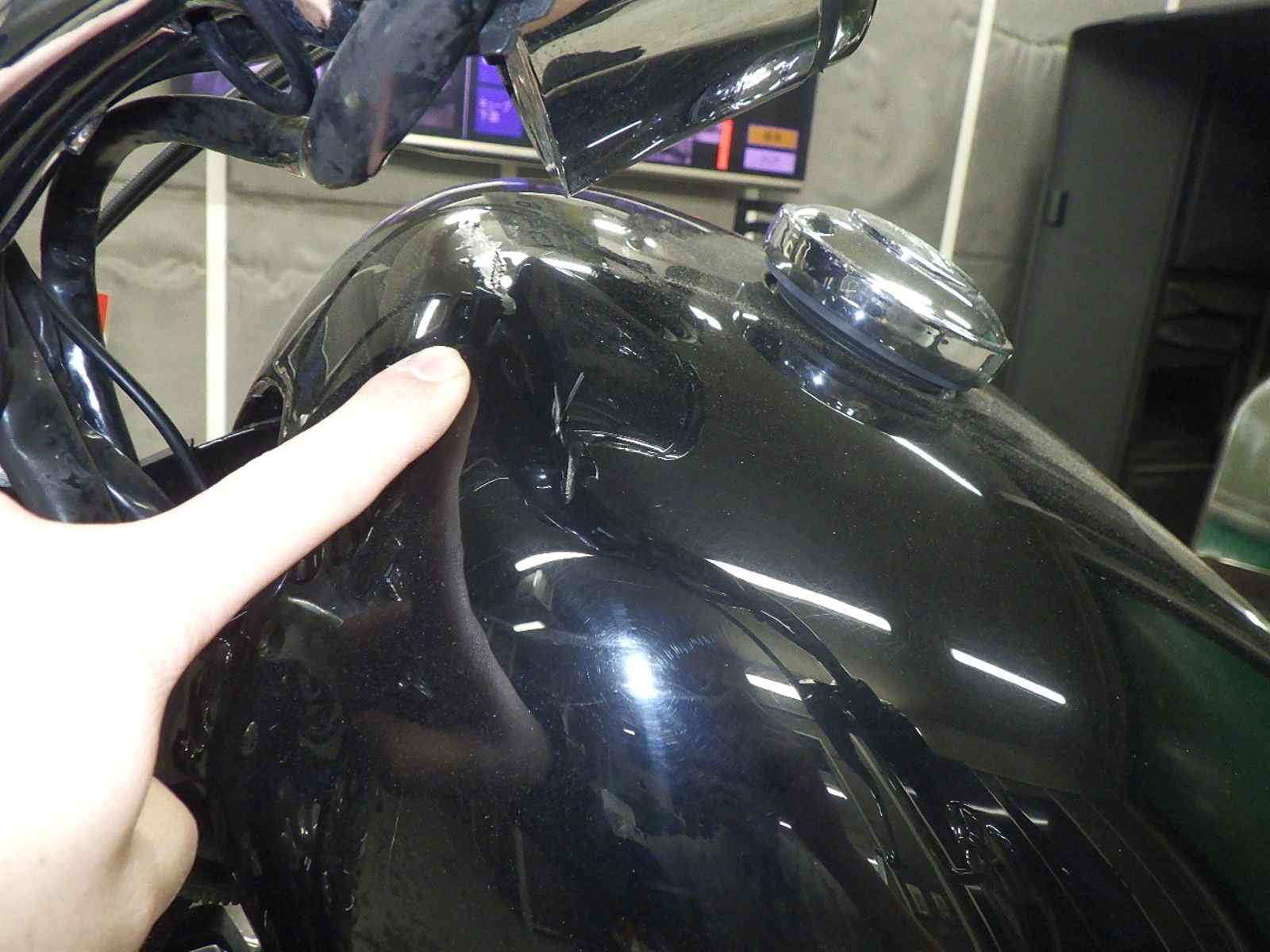 Бензобак: Вмятина на баке Уровень 3, Недостаток Уровень 3, Частичная потеря покраски