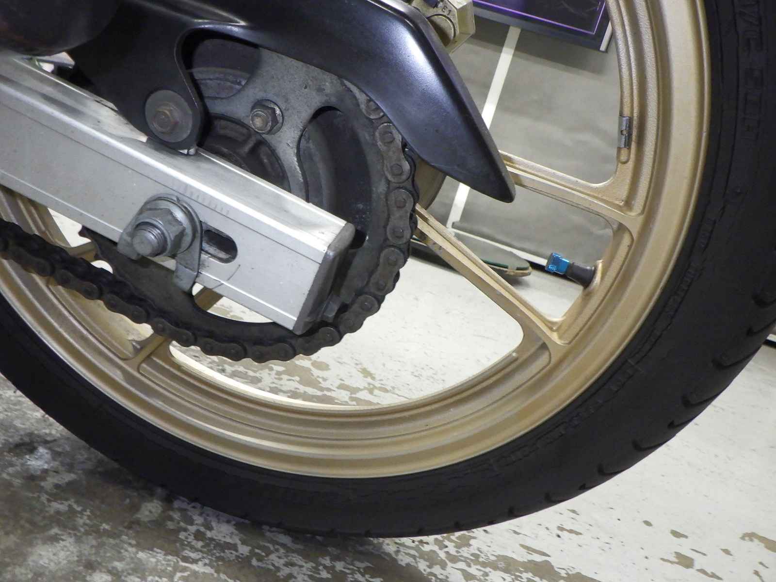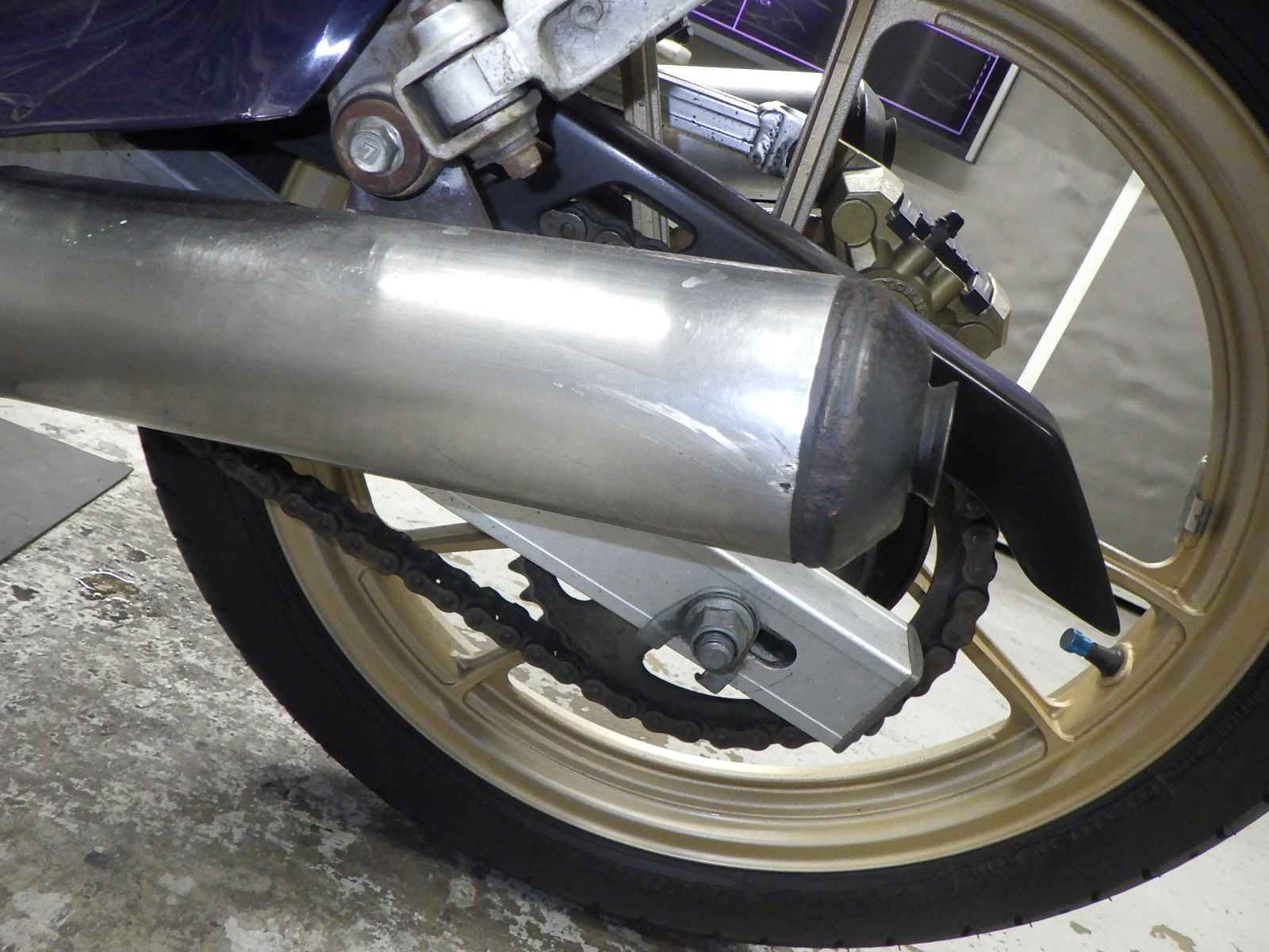 Задняя покрышка: Трещина на шине, требуется замена.
