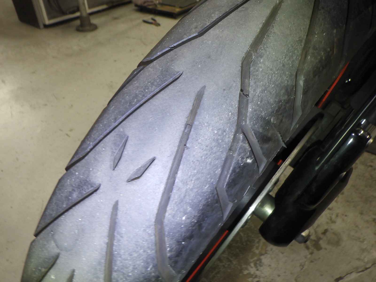 Передняя покрышка: Трещина на шине